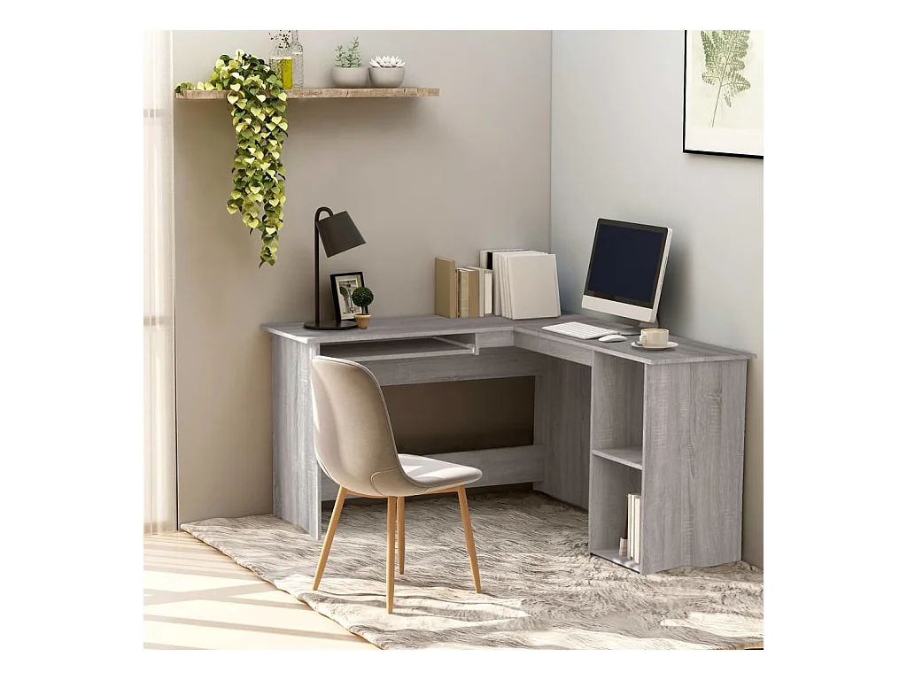 Bureau d'angle en forme de L Gris Béton Bois d'ingénierie FR15598
