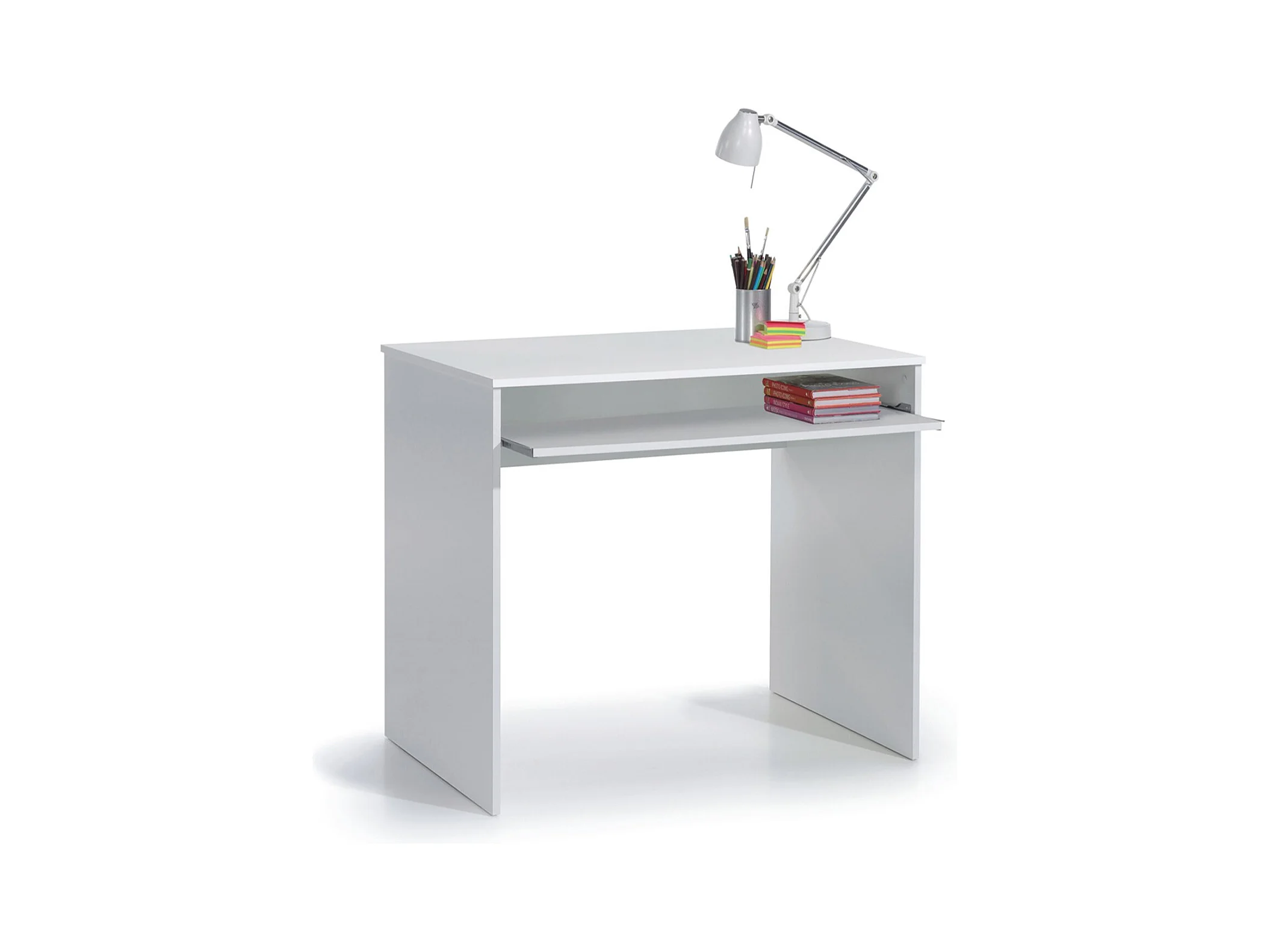 Bureau Dmachi, Bureau linéaire avec étagère fixe, Table d'étude ou de bureau pour PC, 79x43h78 cm, Blanc