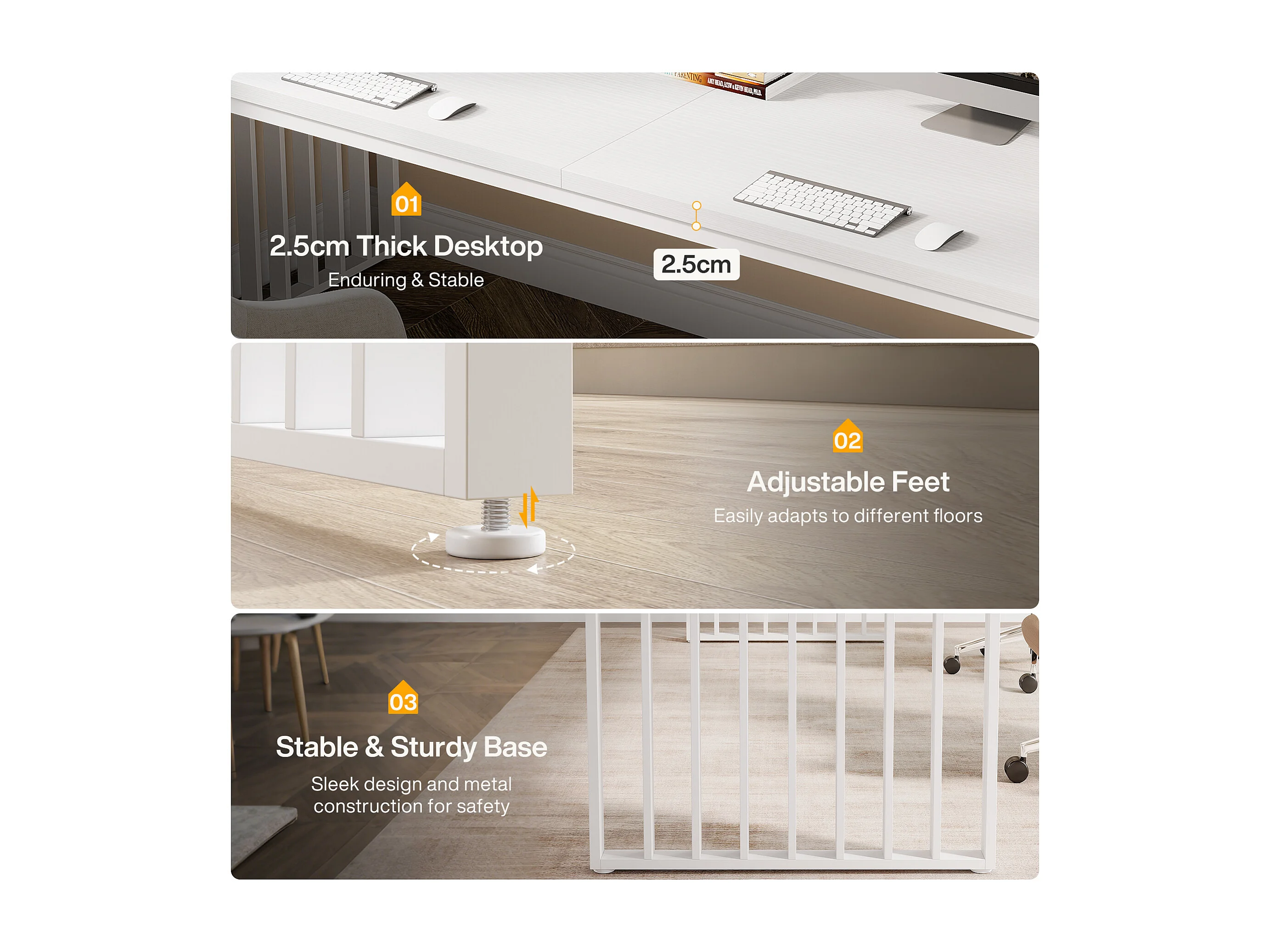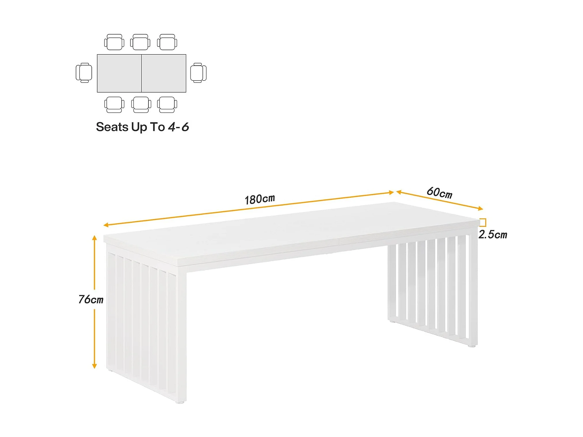 Bureau de 180 cm, grand bureau d'ordinateur, bureau PC, bureau avec cadre en métal robuste