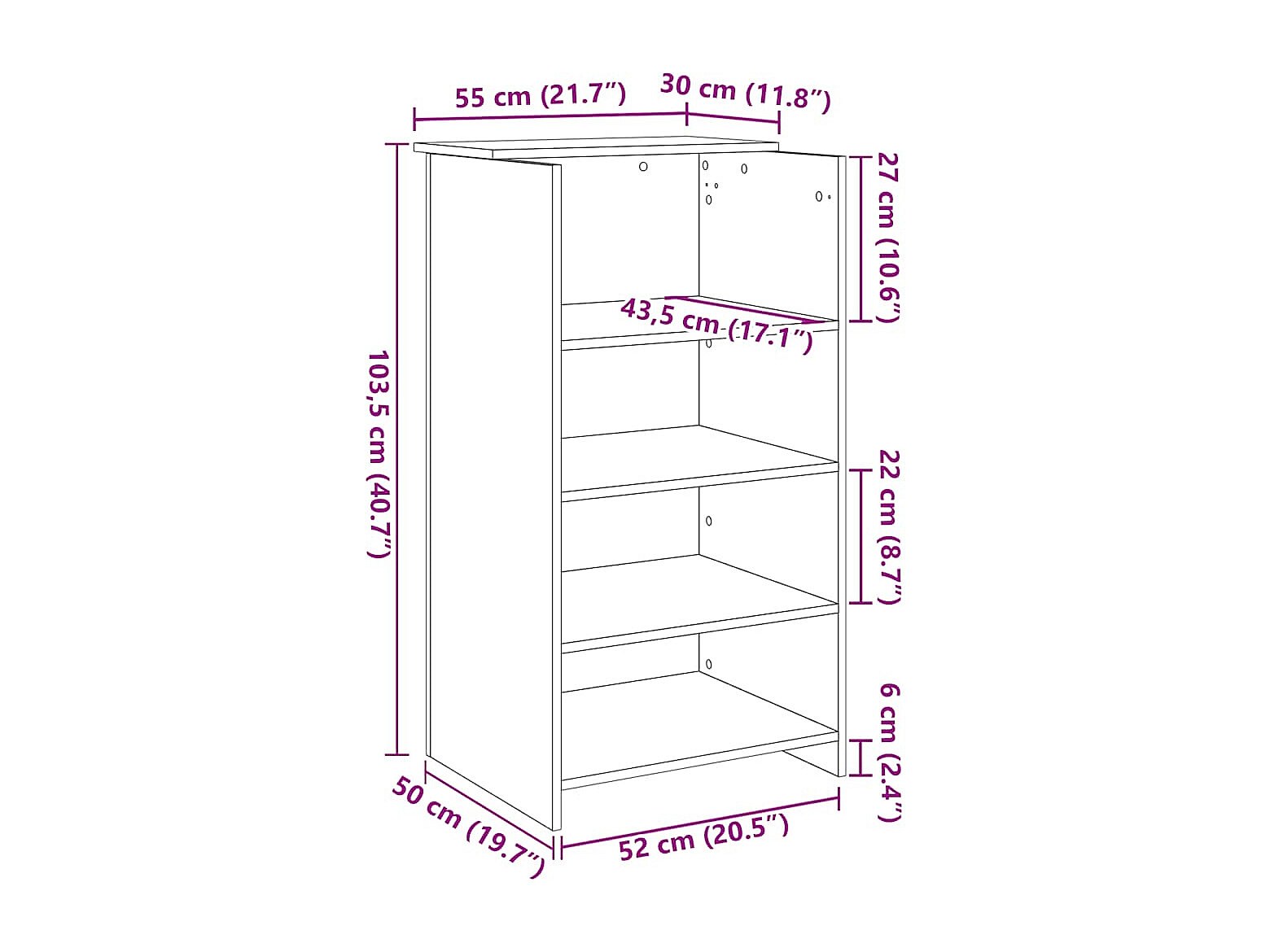 Highboard en vieux bois 60 x 32 x 153 cm - fabriqué en bois d'ingénierie.