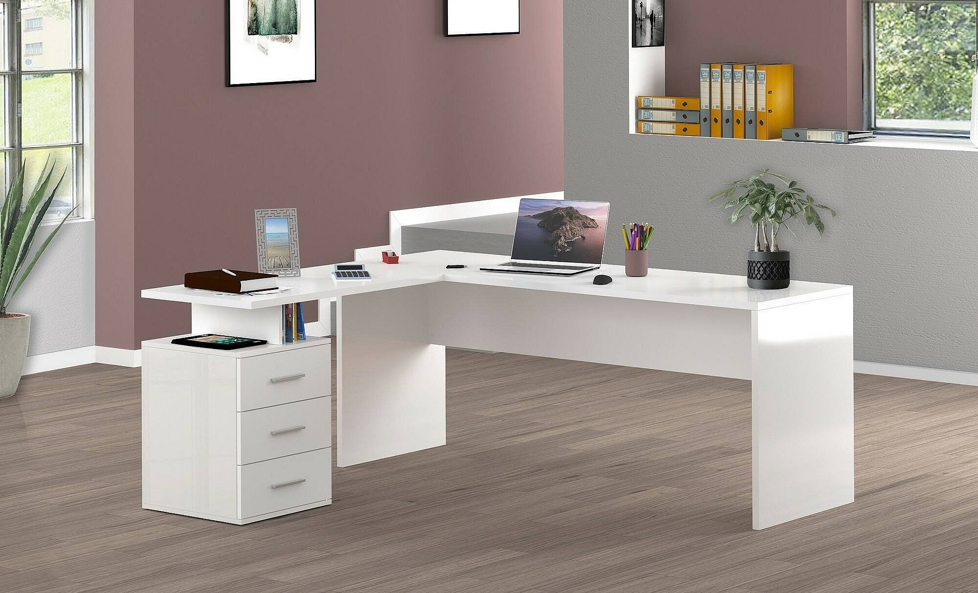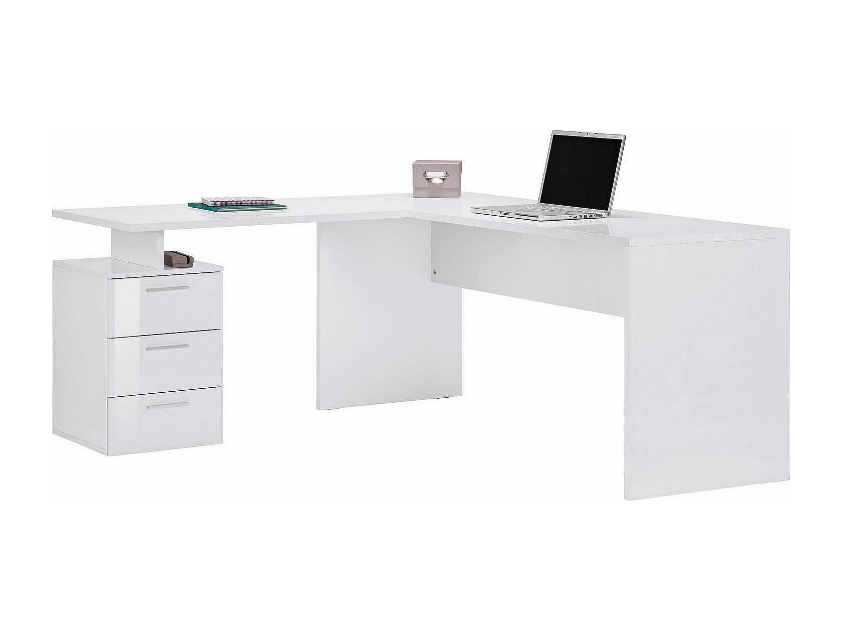 Bureau Dguarin, Bureau d'angle PC, Table de bureau polyvalente, Bureau gain de place multi-positions, 100% Made in Italy, 160x60h75 cm, Blanc brillant