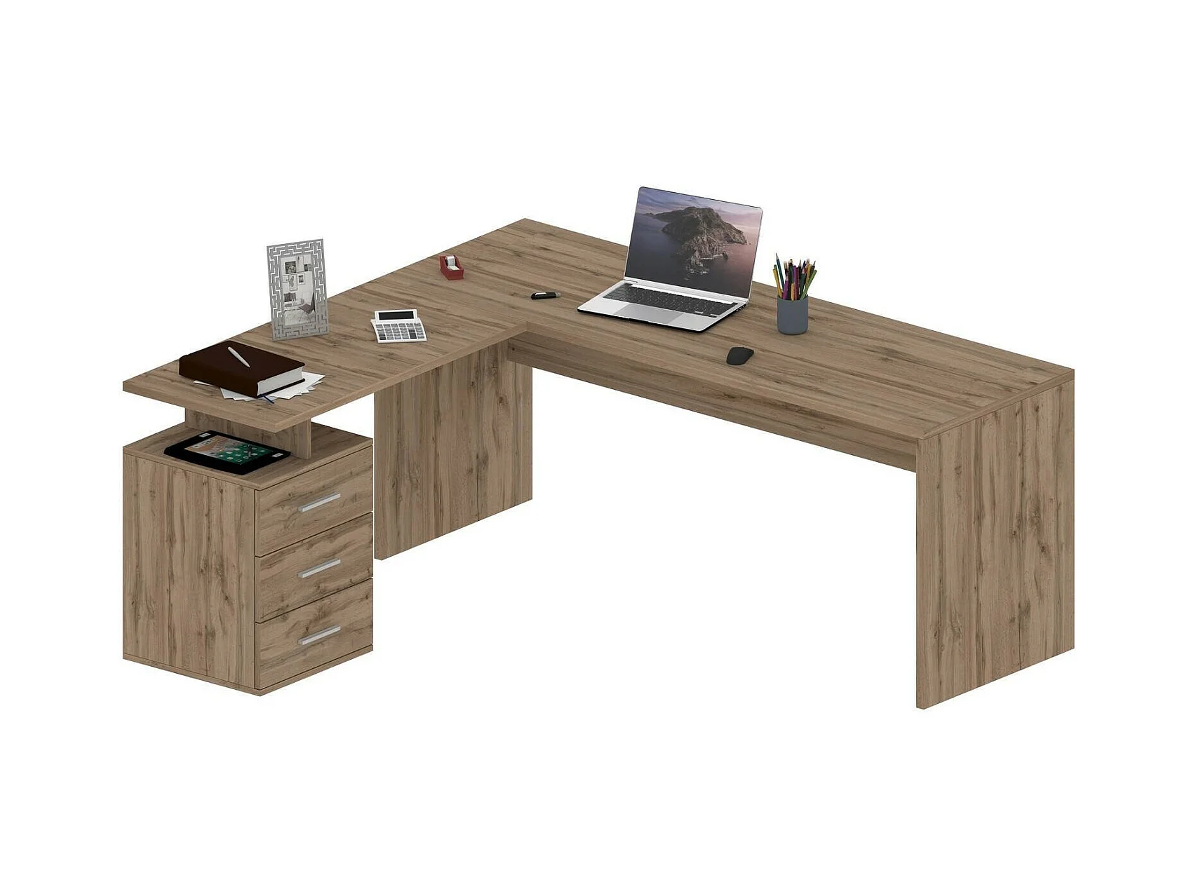Bureau Salomone, Bureau d'angle avec plateau, Bureau polyvalent, 180x90h160 cm, Chêne