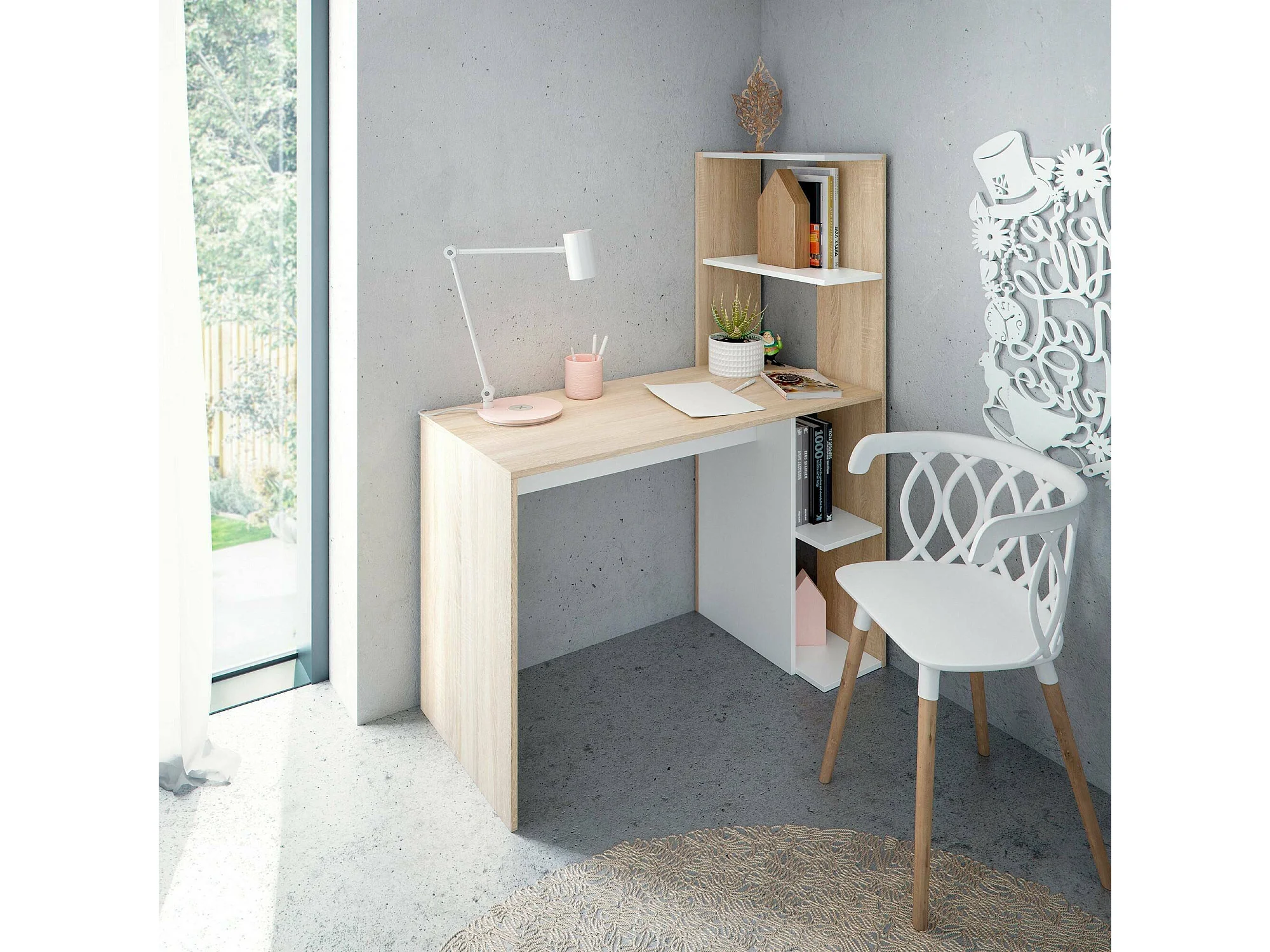 Bureau droit avec rangement style scandinave