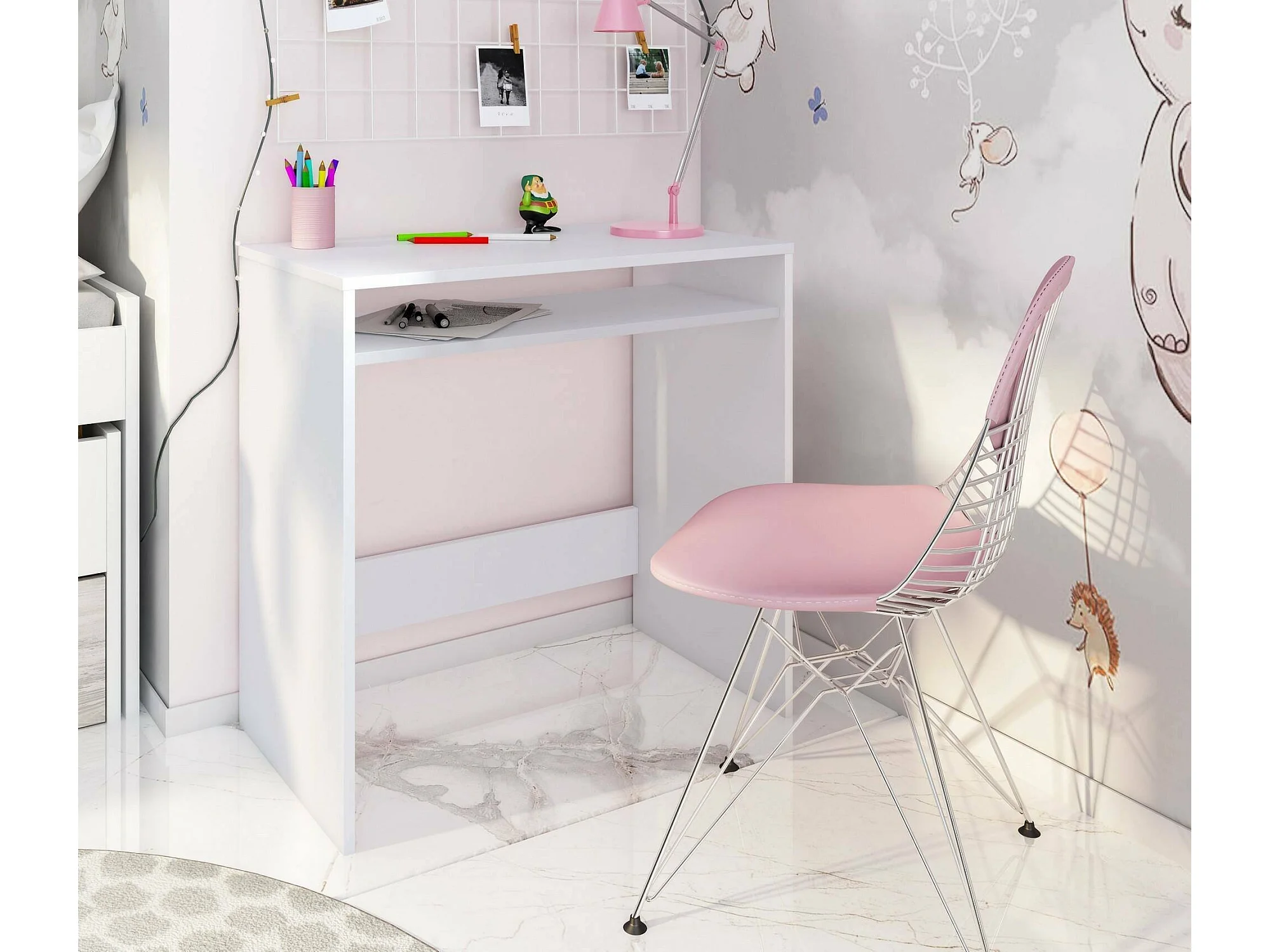 Bureau Dcapezz, Bureau avec étagère, Table d'étude de support PC pour bureau ou chambre, Table de travail, 90x54h79 cm, Blanc