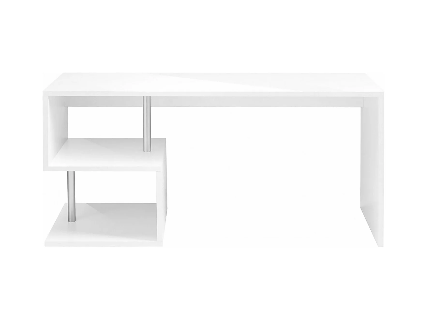 Bureau Philadelphia, Bureau réversible multifonctionnel, Table d'étude avec commode avec 2 tiroirs et 1 porte, 138x60h74 cm, Blanc