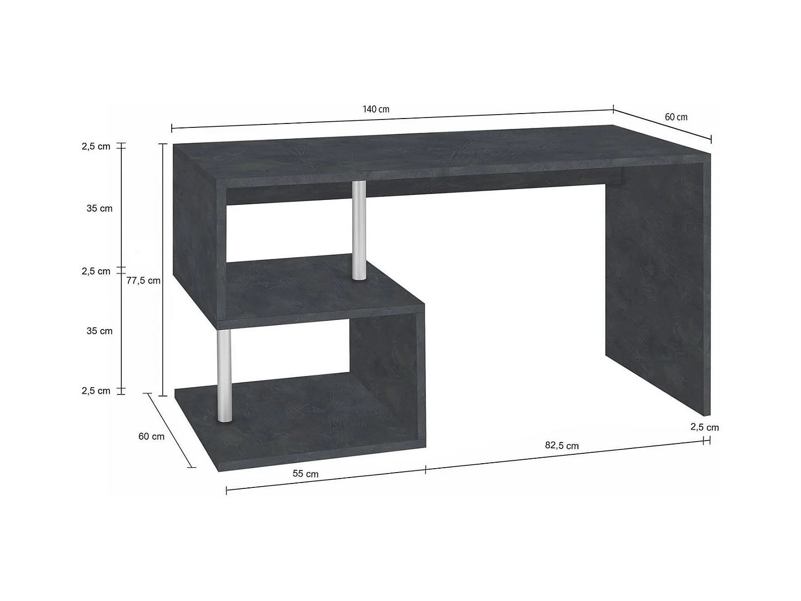 Bureau Dmorisc, Bureau PC Linéaire, Table de bureau polyvalente, Bureau gain de place multi-positions, 100% Made in Italy, 140x60h78 cm, Ardoise