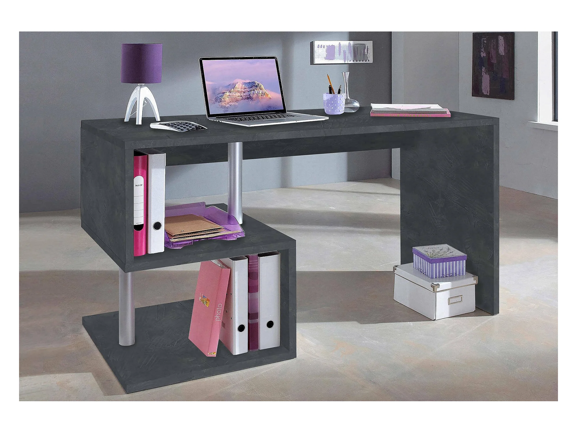 Bureau Sasha, Bureau d'angle PC, Table de bureau polyvalente, Bureau gain de place multi-positions, 100% Made in Italy, 160x60h78 cm, Ardoise