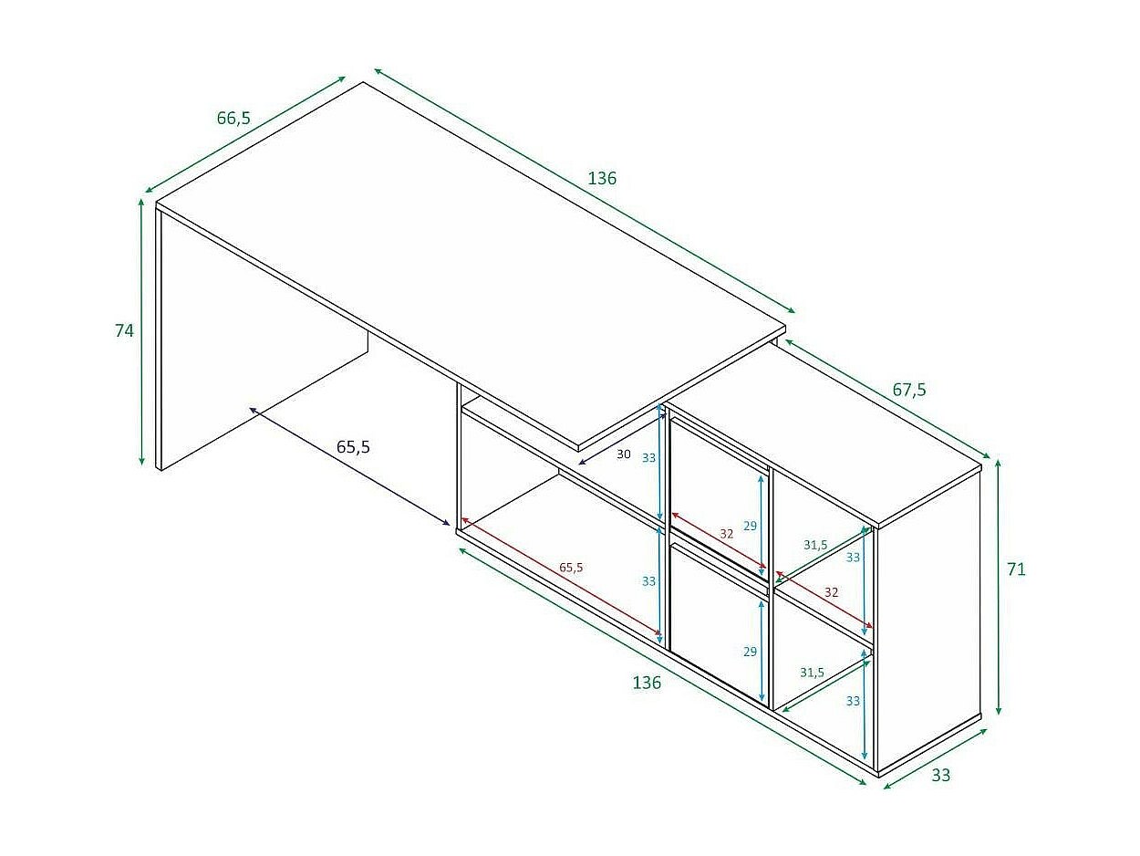 Bureau Ddiaw, Bureau multi-positions pour le bureau ou la chambre, Table d'étude d'angle polyvalente, 139x92h75 cm, Blanc