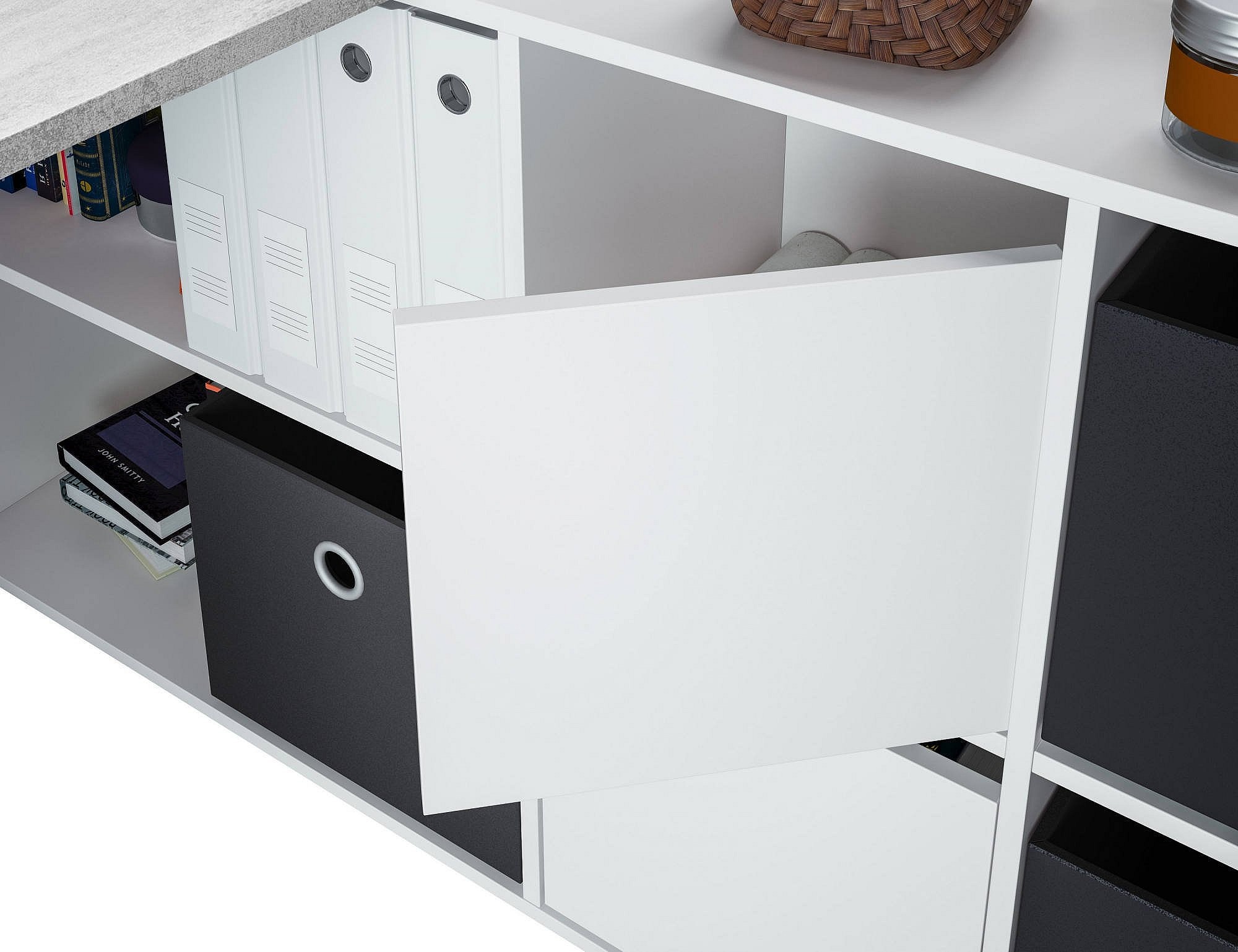 Bureau Philadelphia, Bureau réversible multifonctionnel, Table d'étude avec commode avec 2 tiroirs et 1 porte, 138x60h74 cm, Blanc