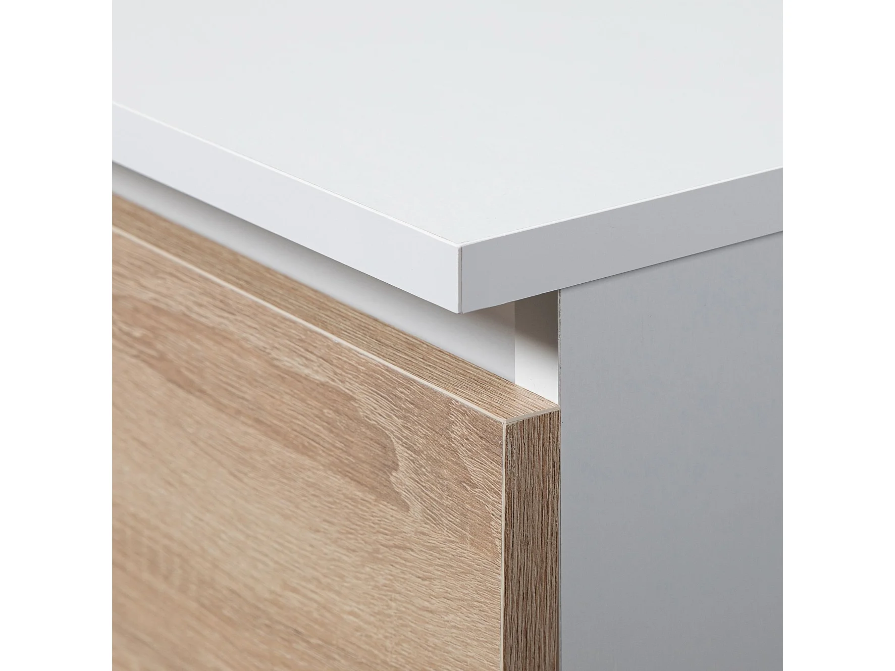Bureau d'ordinateur AKORD droit A6 Blanc 90 cm 3 tiroirs façade Chêne Sonoma 1 étagère 90x50x77 cm