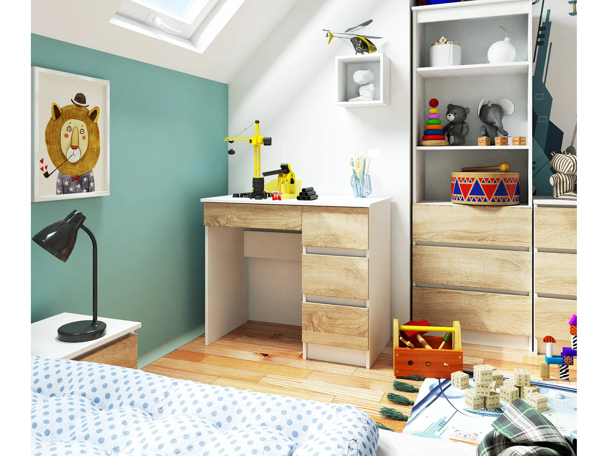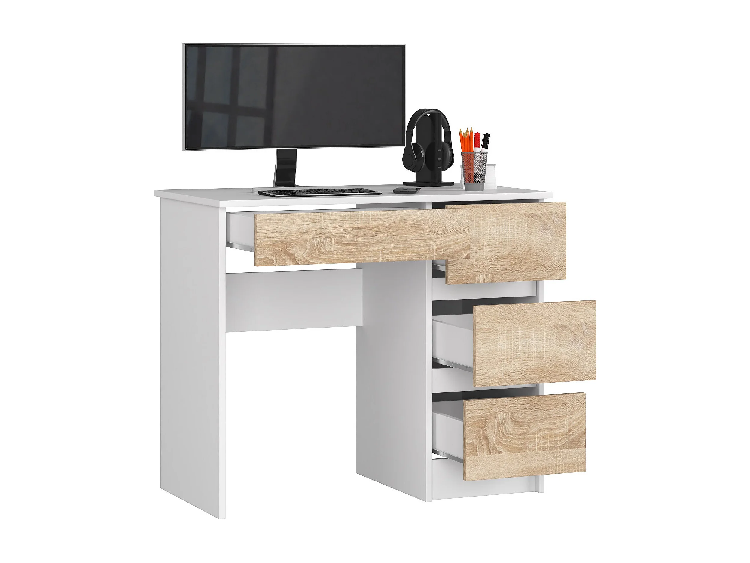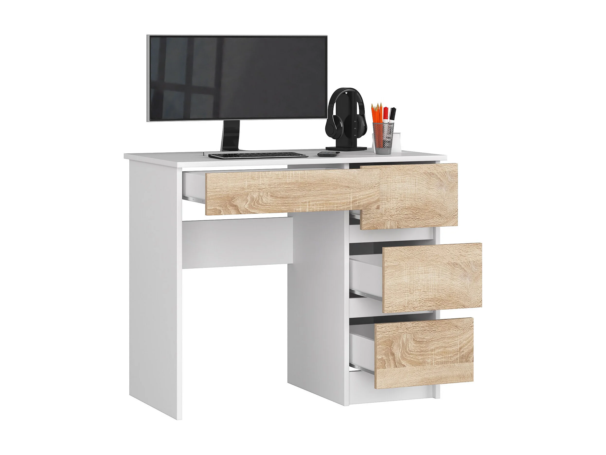 Bureau d'ordinateur AKORD droit A7 Blanc 90 cm 4 tiroirs façade Chêne Sonoma 90x50x77 cm