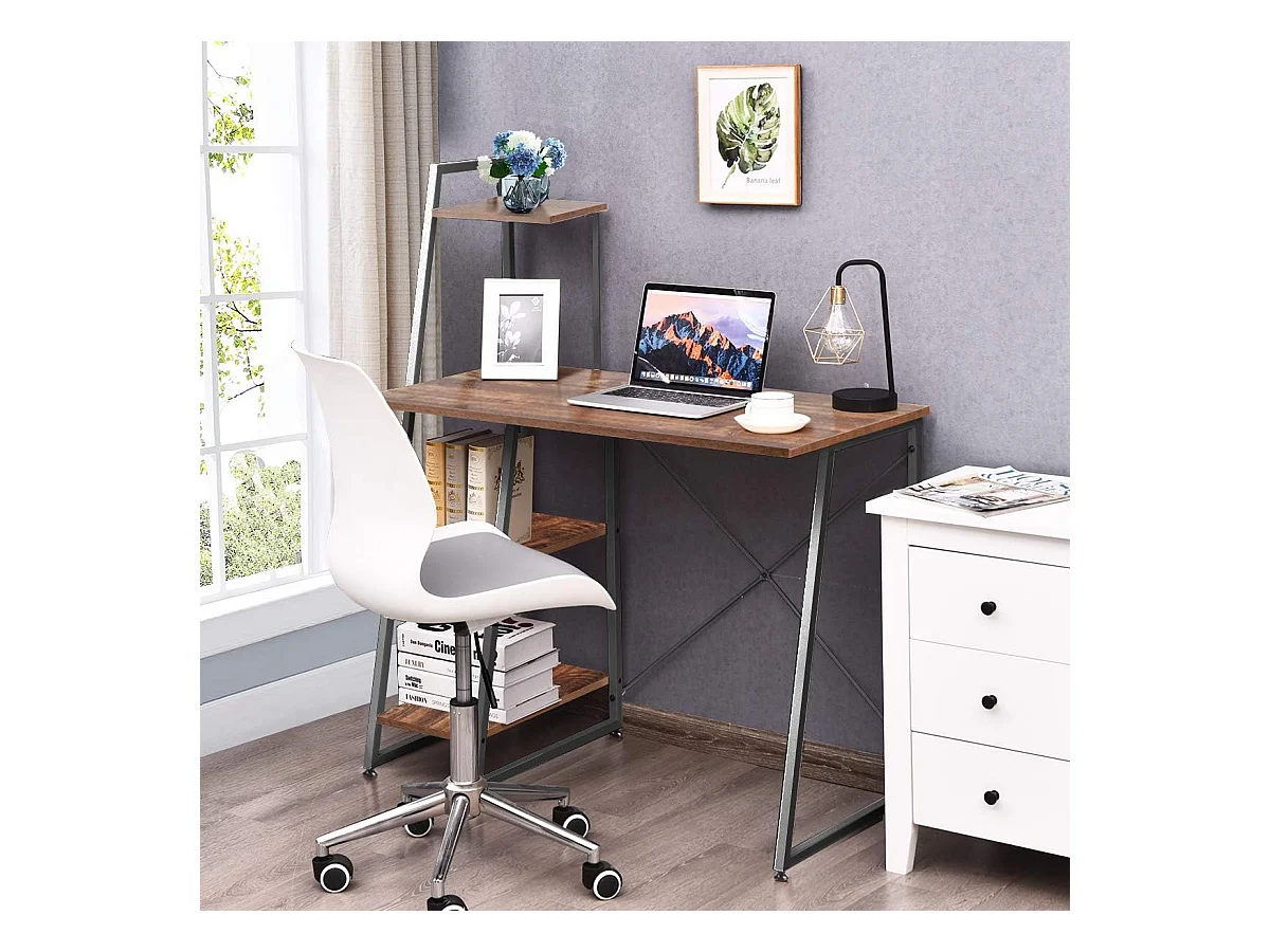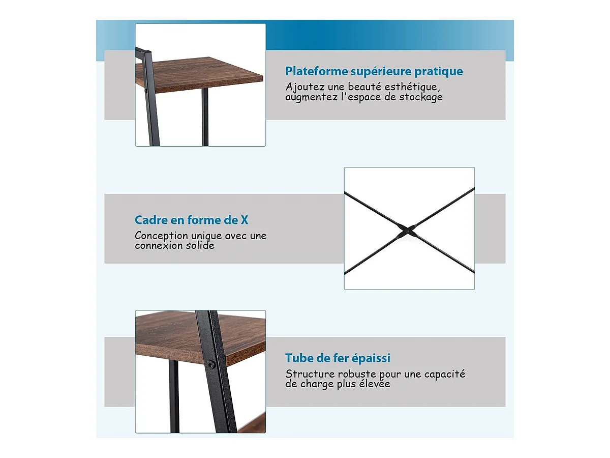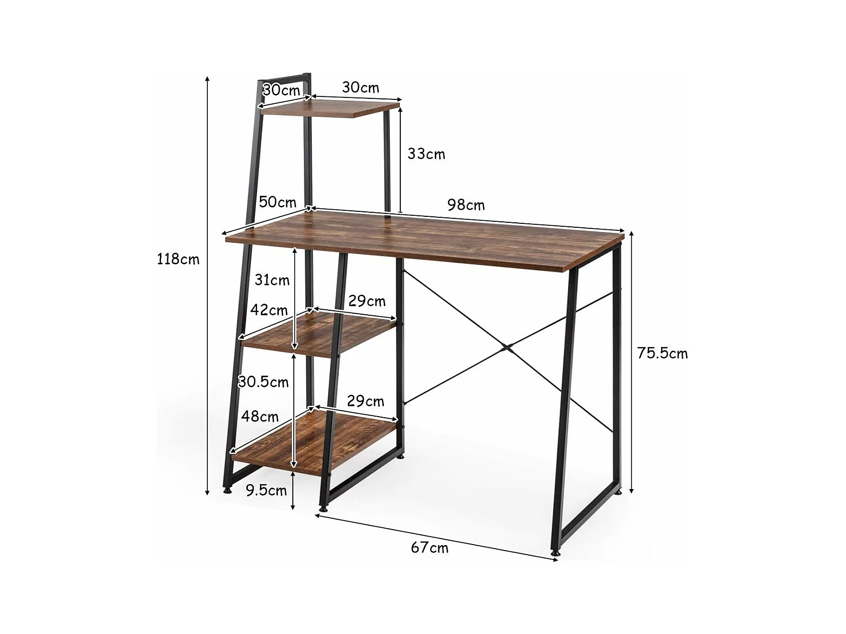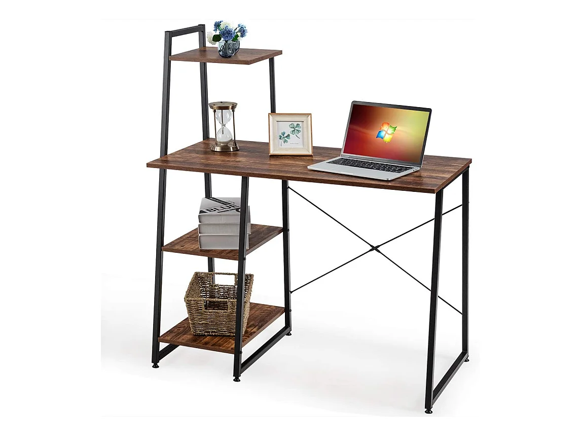 Bureau d'Ordinateur avec 4 Étagères de Rangement Bureau Informatique Cadre Métal en Forme de X Patin Réglable 98 x 50 x 118CM pour Bureau,Domicile (Marron Rustique)