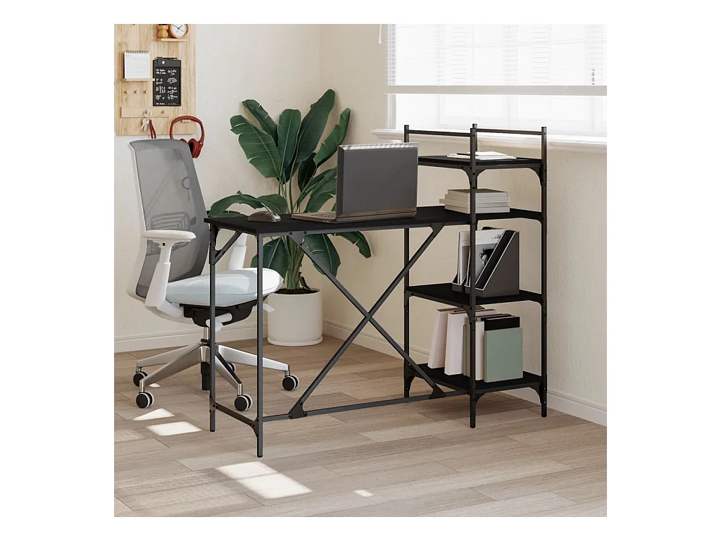 Bureau d'ordinateur avec étagères noir 120x47x109 cm
