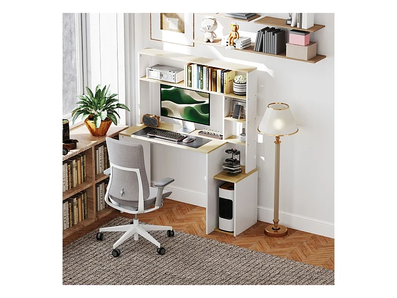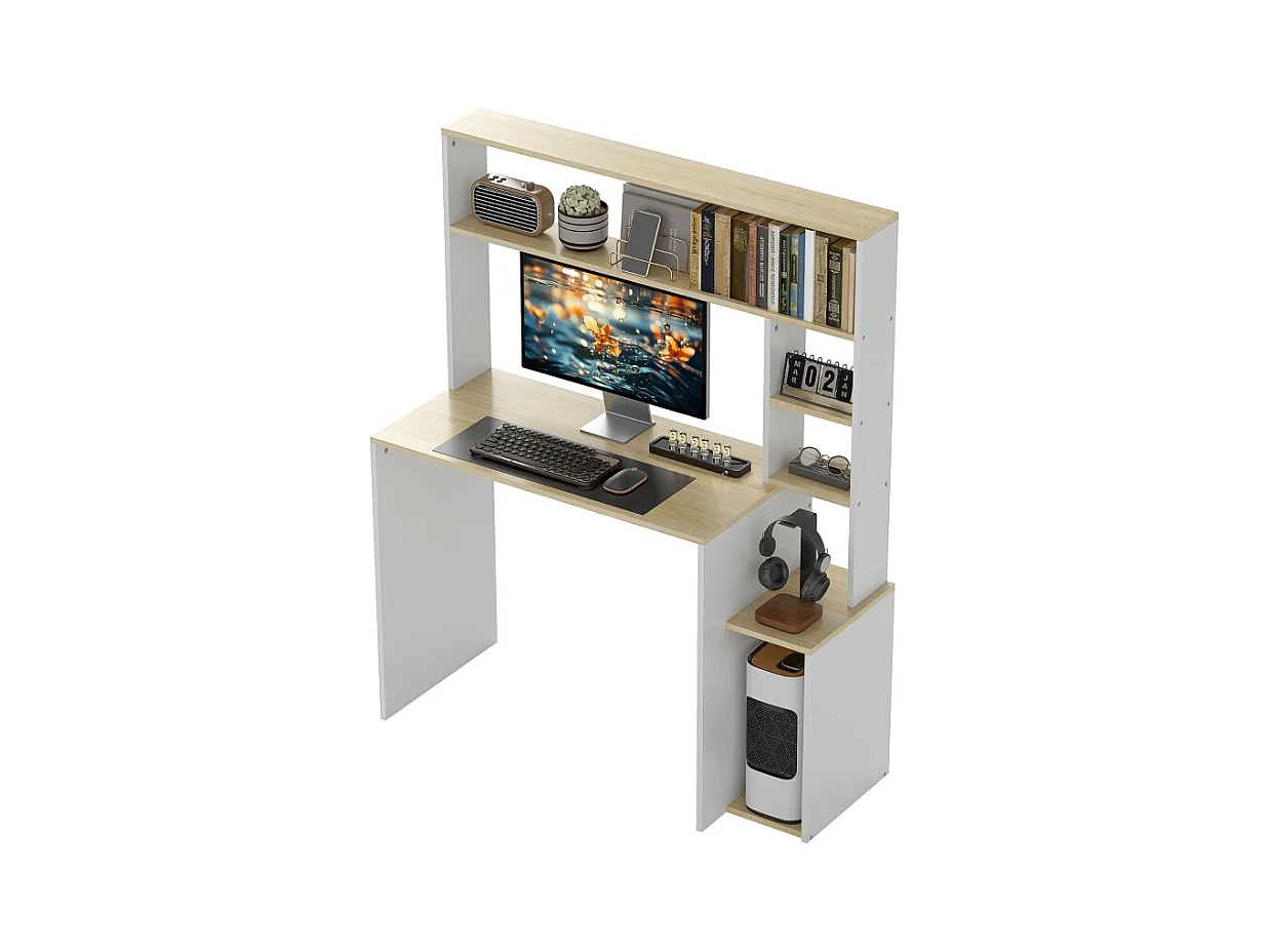 Bureau d'ordinateur - avec étagères ouvertes et support CPU - charge max 41KG - Chêne - 113x45x138,5cm