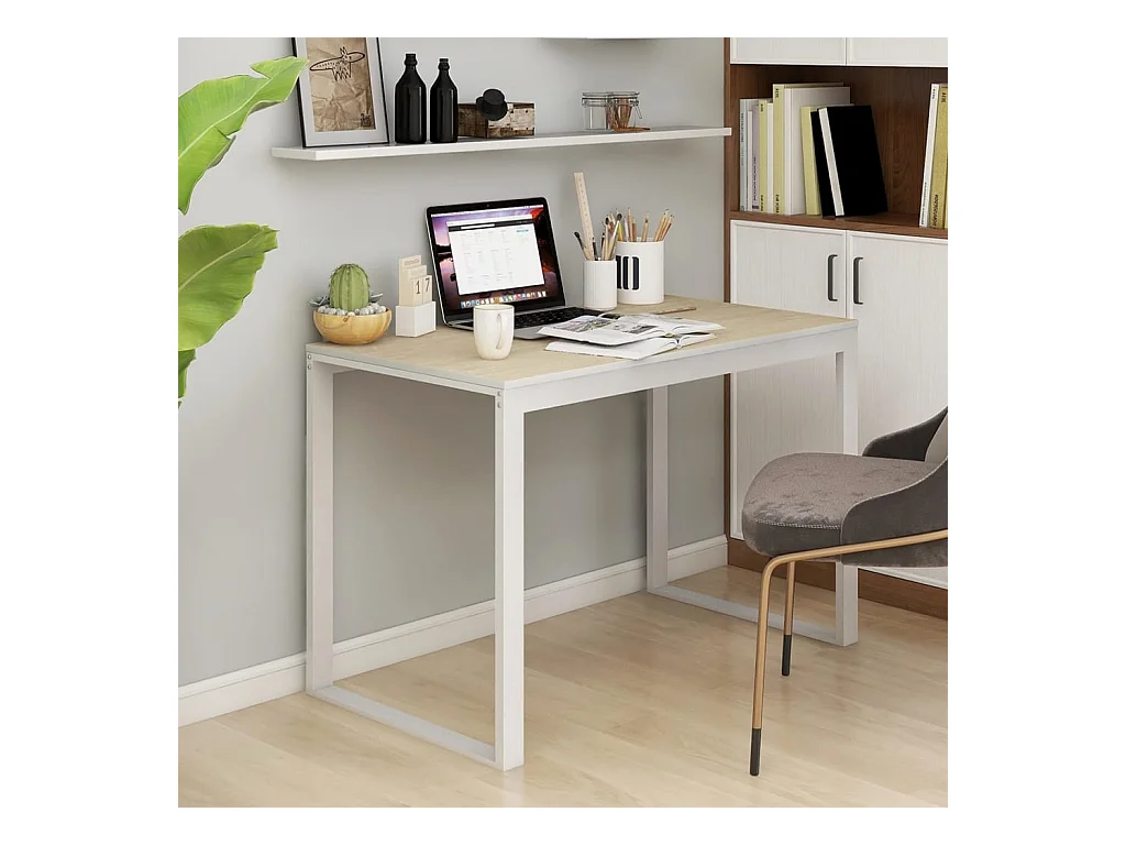 Bureau d'ordinateur Blanc et chêne 110x60x73 cm Aggloméré