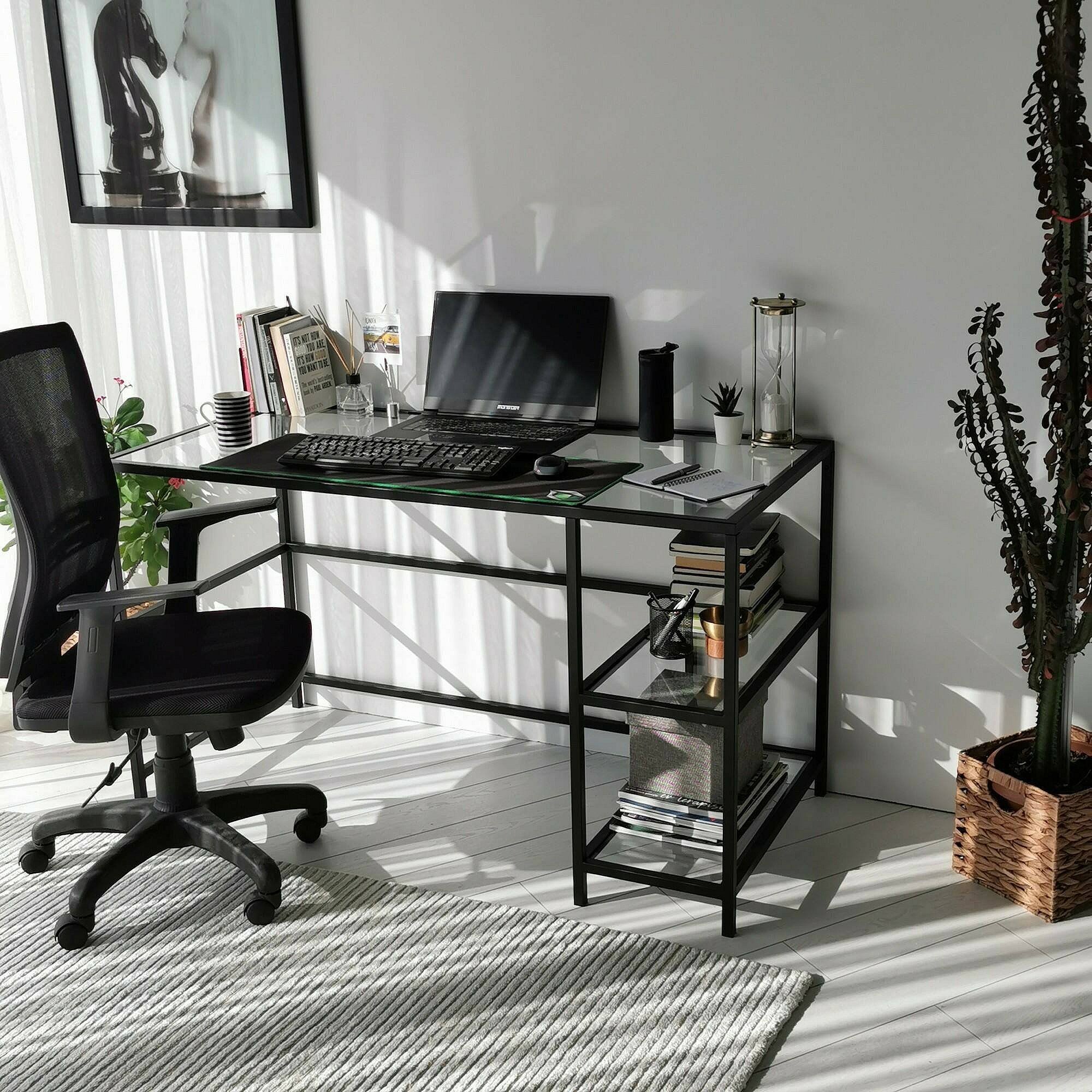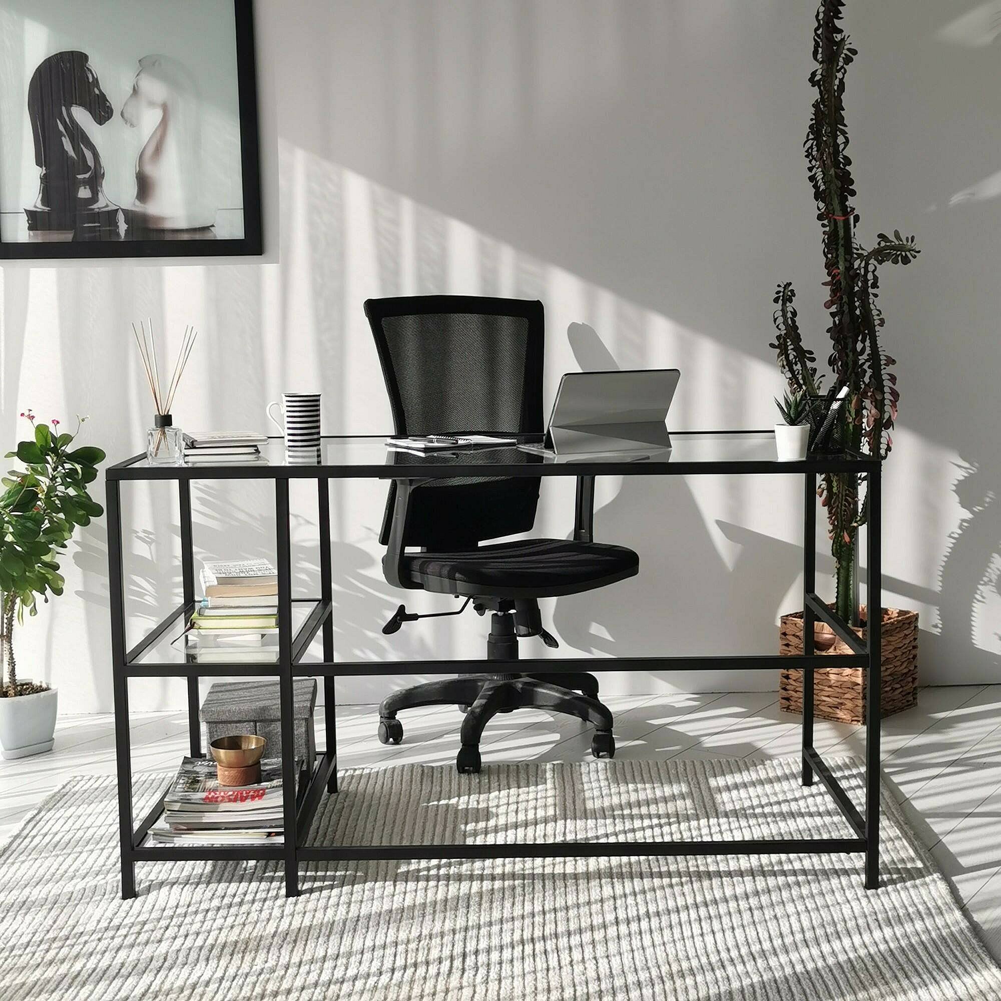 Bureau Doris, Pupitre polyvalent, Table de bureau pour PC, Plan de travail, 130x60h75 cm, Noir
