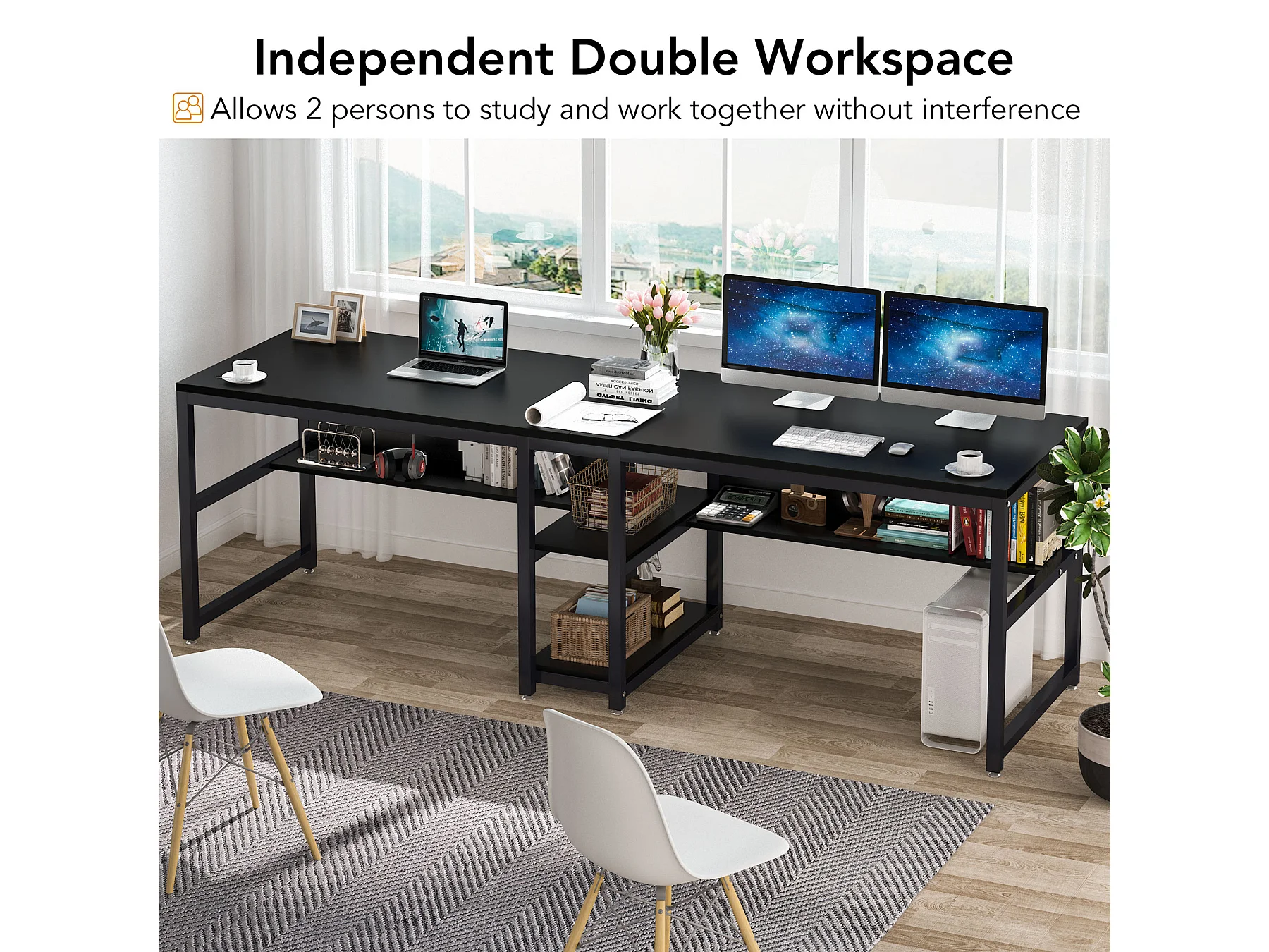 Bureau double pour deux personnes avec bibliothèque, bureau d'ordinateur double pour deux personnes, noir