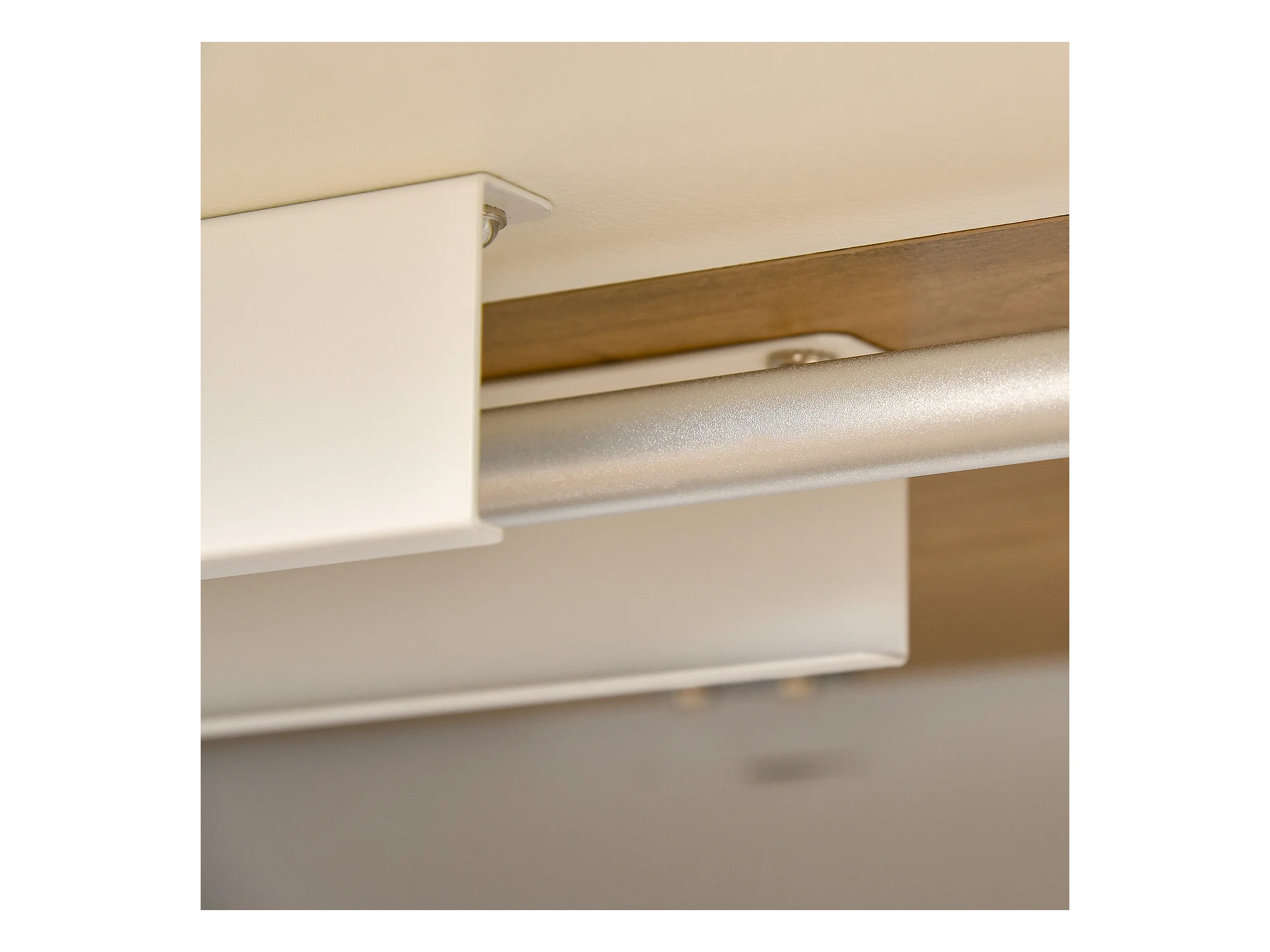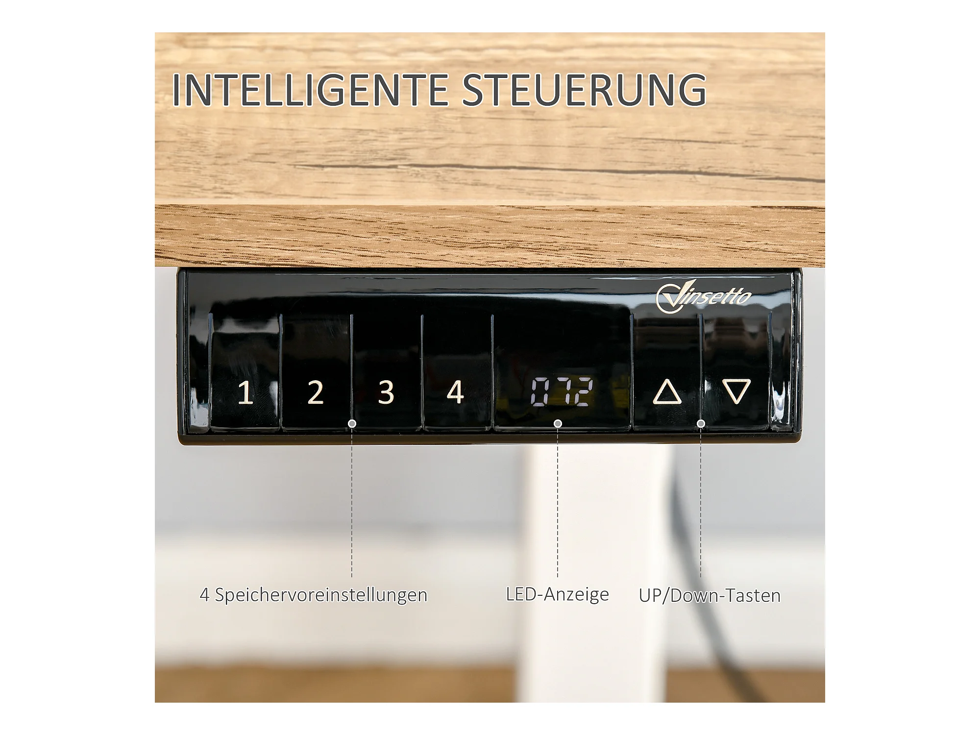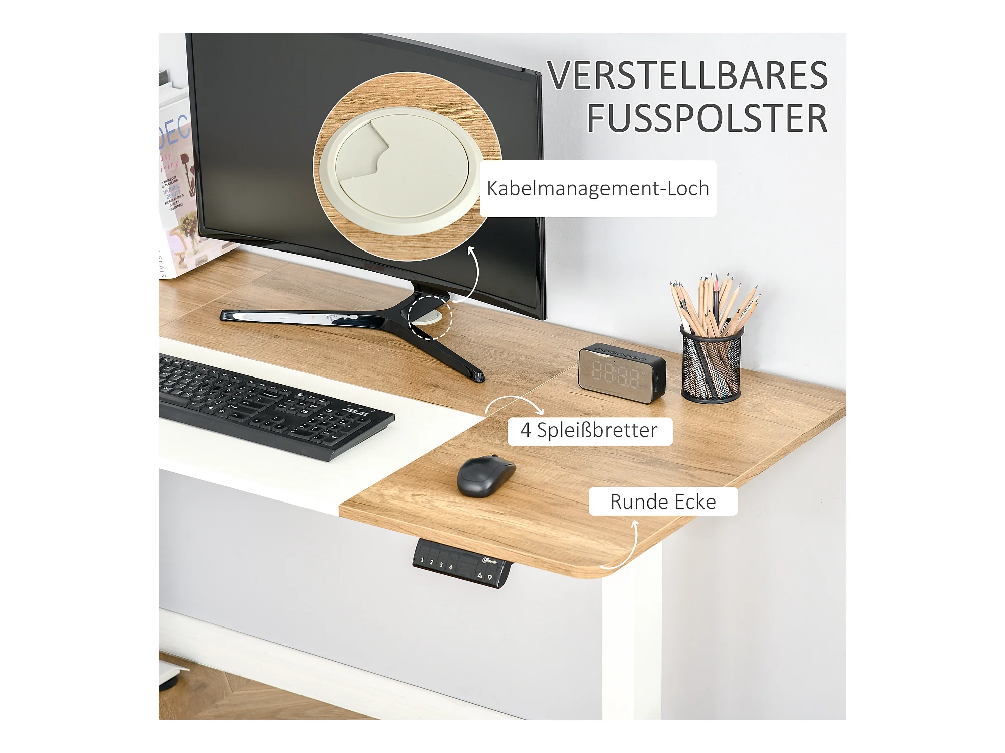 Bureau électrique réglable en hauteur, cadre métal, blanc et bois naturel (140x70x72-116cm)