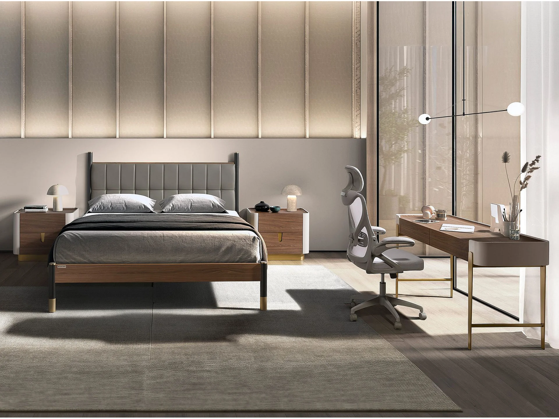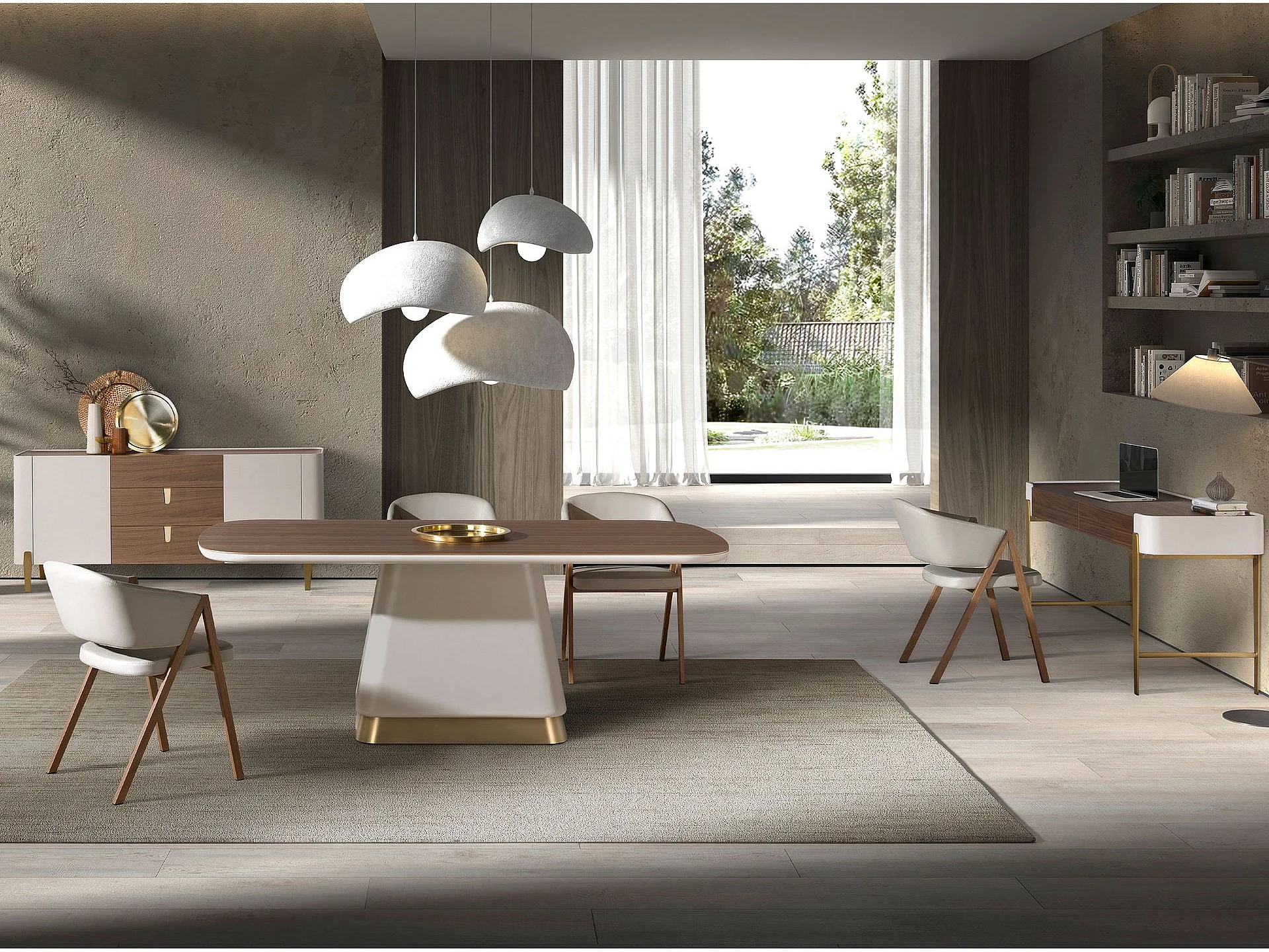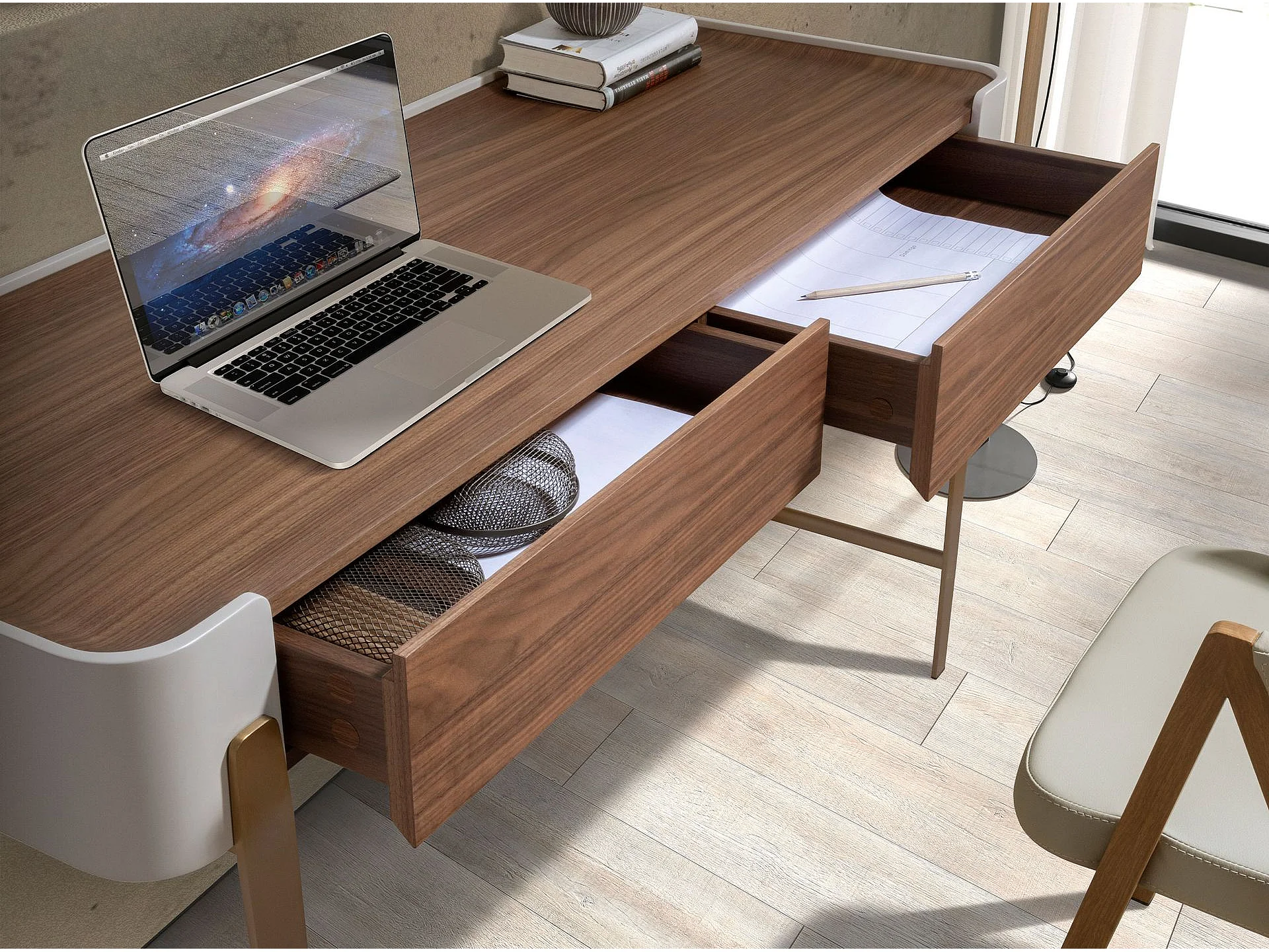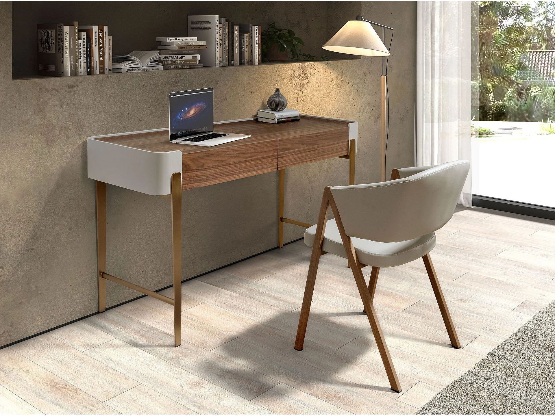 Bureau en noyer, beige et acier poli doré 7186 ANGEL CERDA