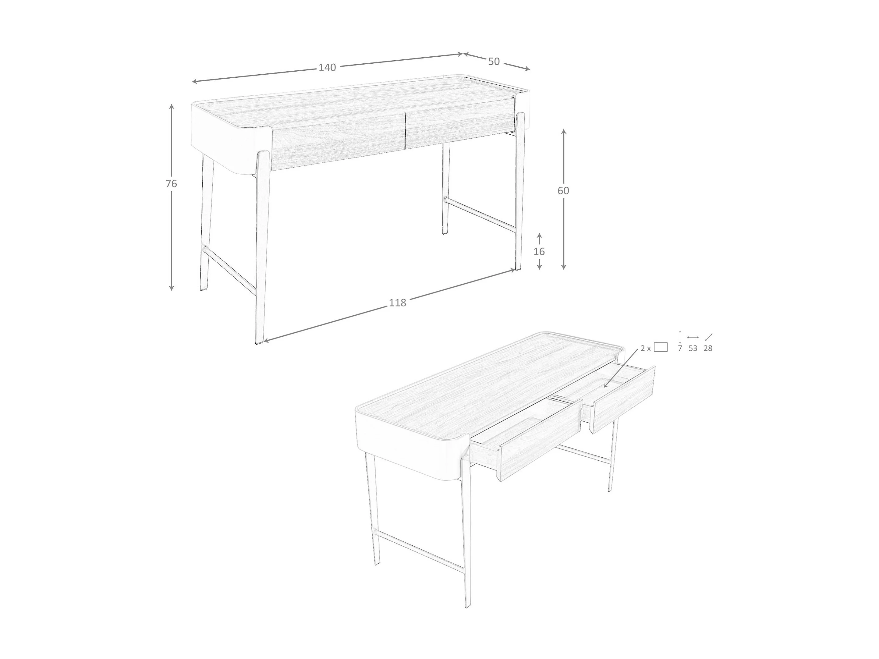Bureau - 2 tiroirs - chêne massif - BALTO