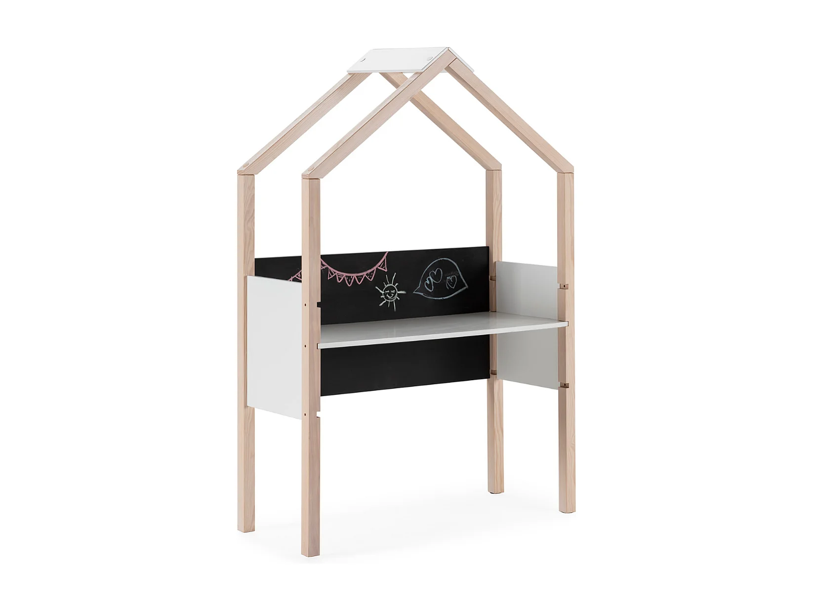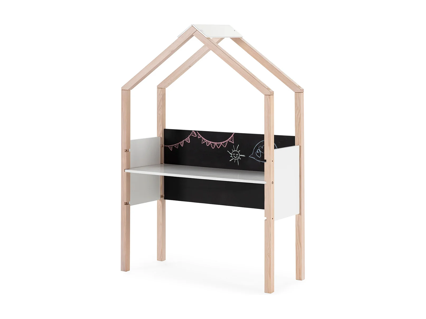 Bureau avec ardoise décor blanc laqué et bois clair L100 cm ELORA