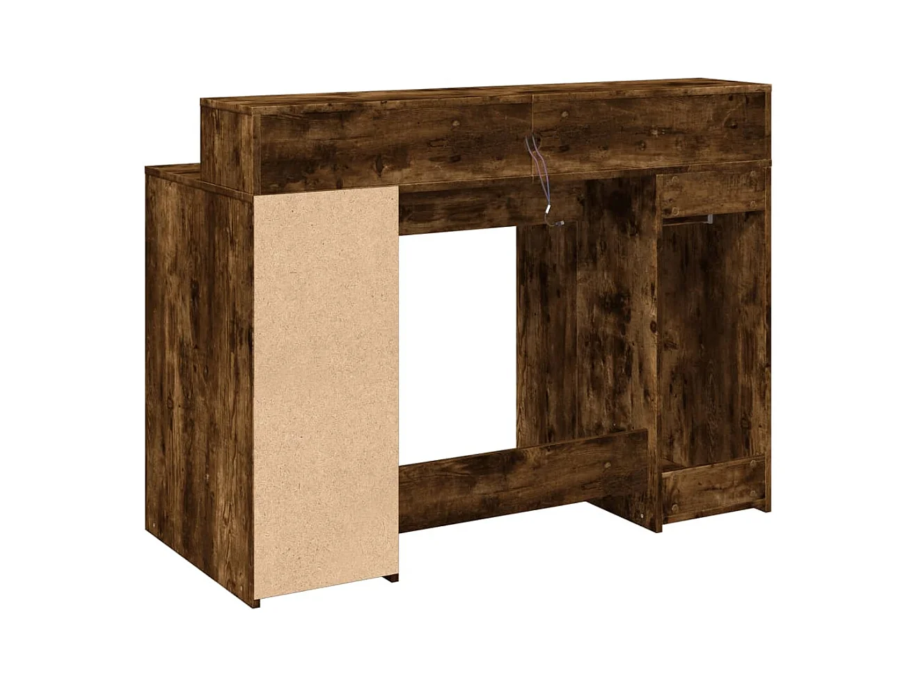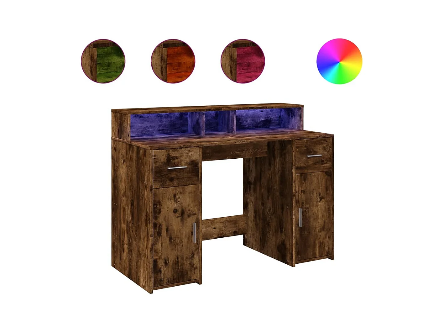 Bureau et lumières LED chêne fumé 120x55x91cm bois d'ingénierie