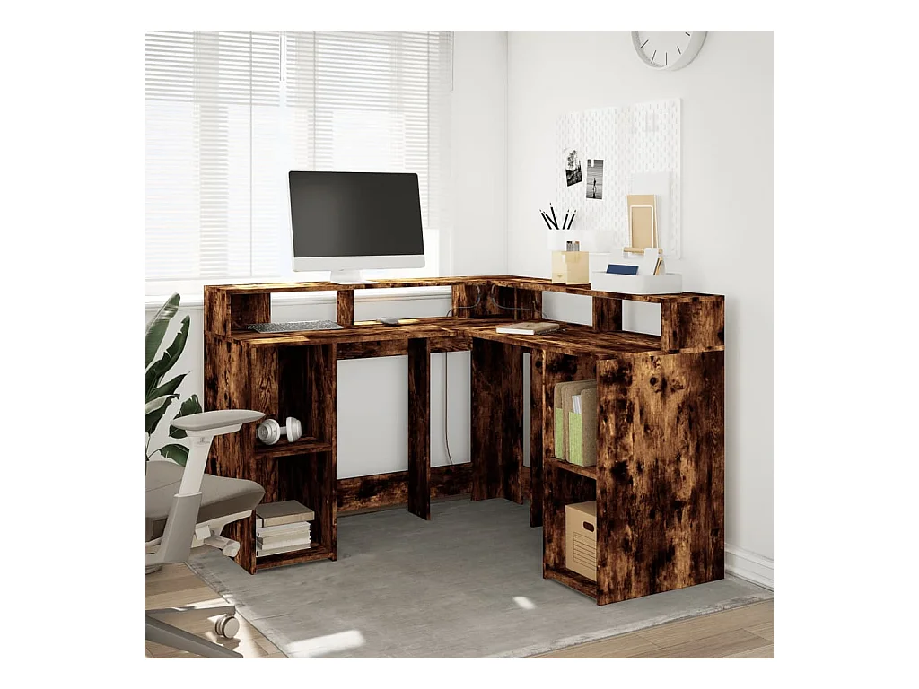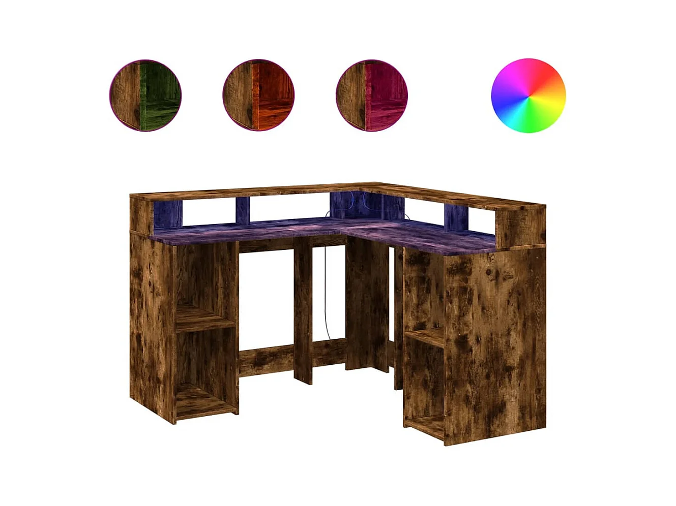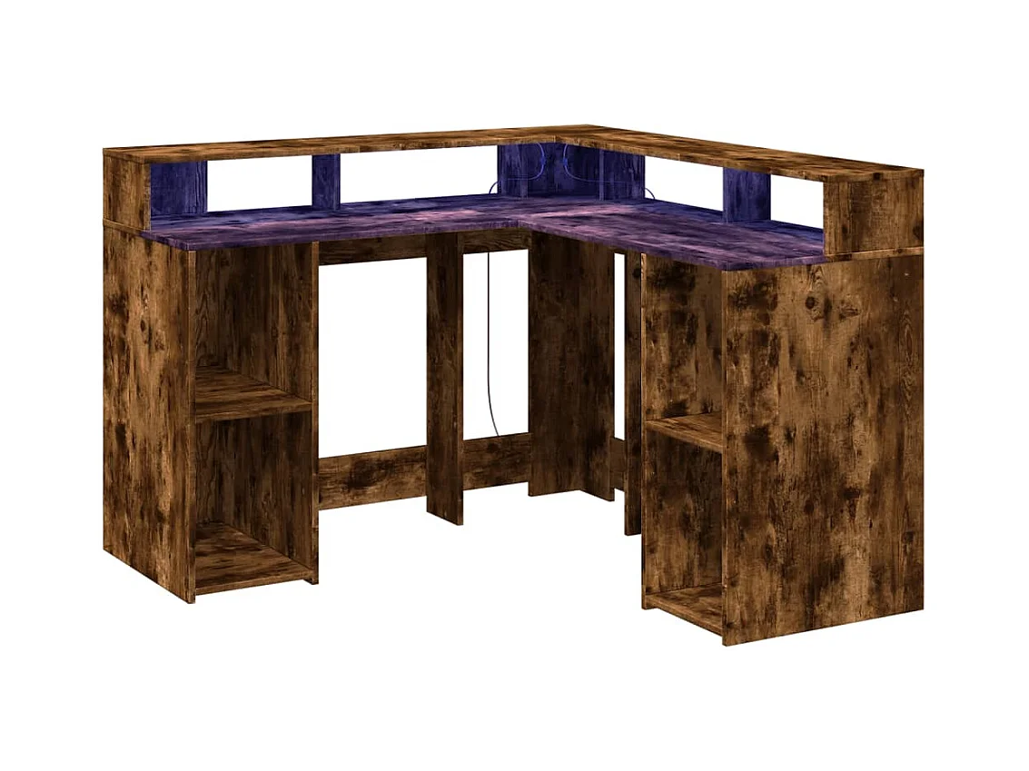 Bureau et lumières LED chêne fumé 130x130x91cm bois ingénierie
