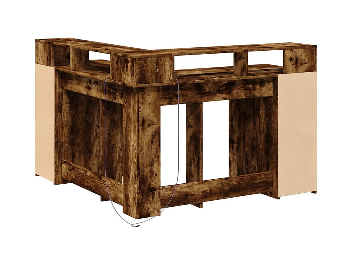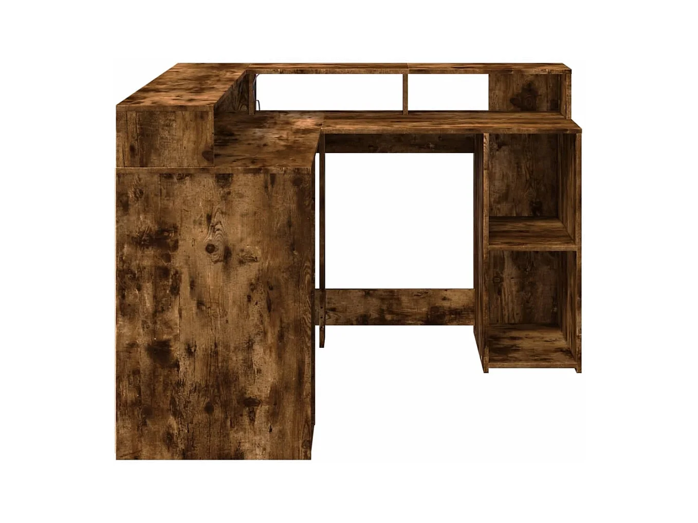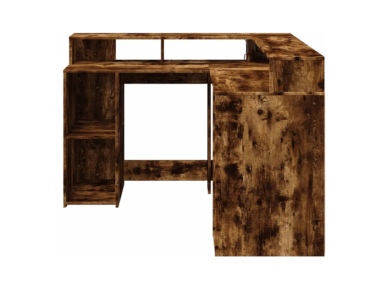 Bureau et lumières LED chêne fumé 130x130x91cm bois ingénierie