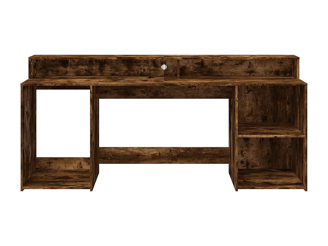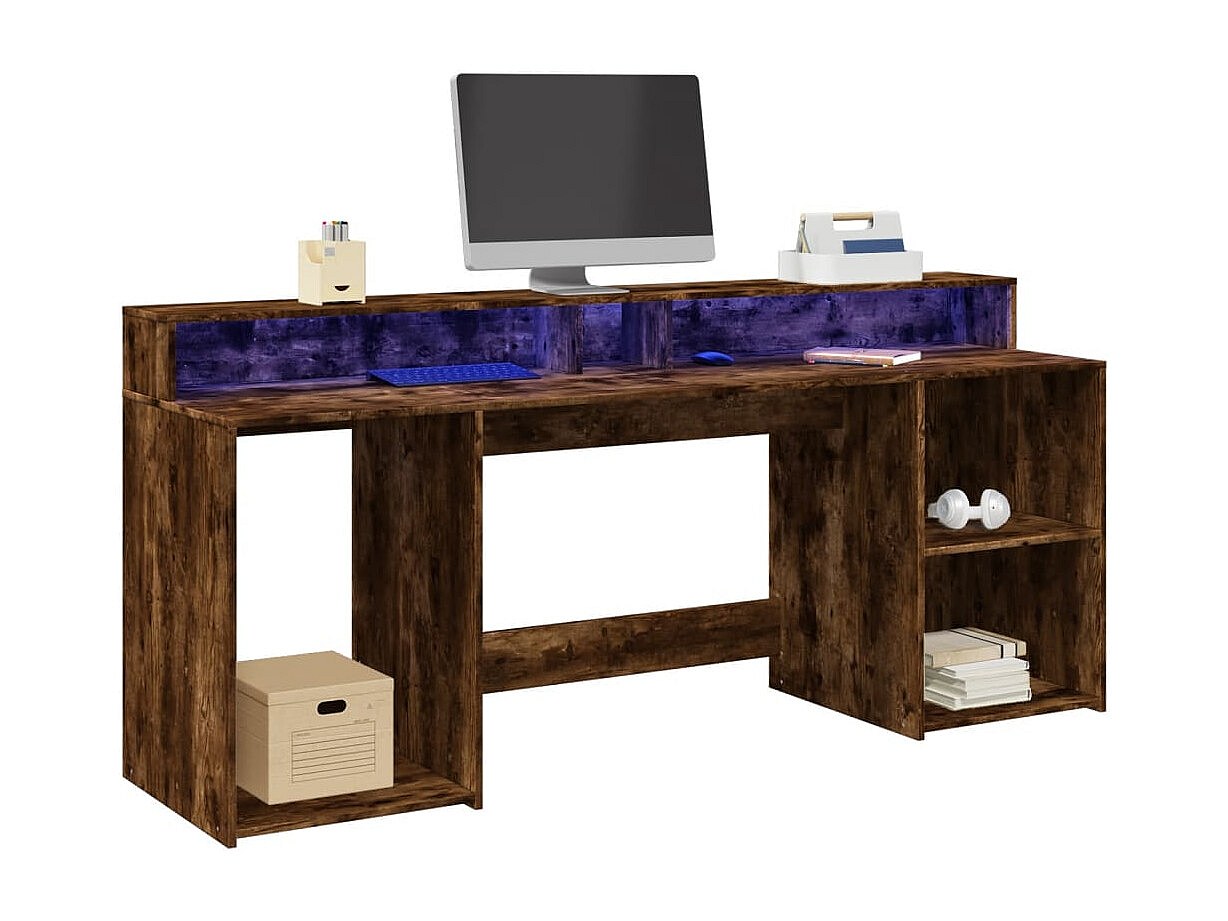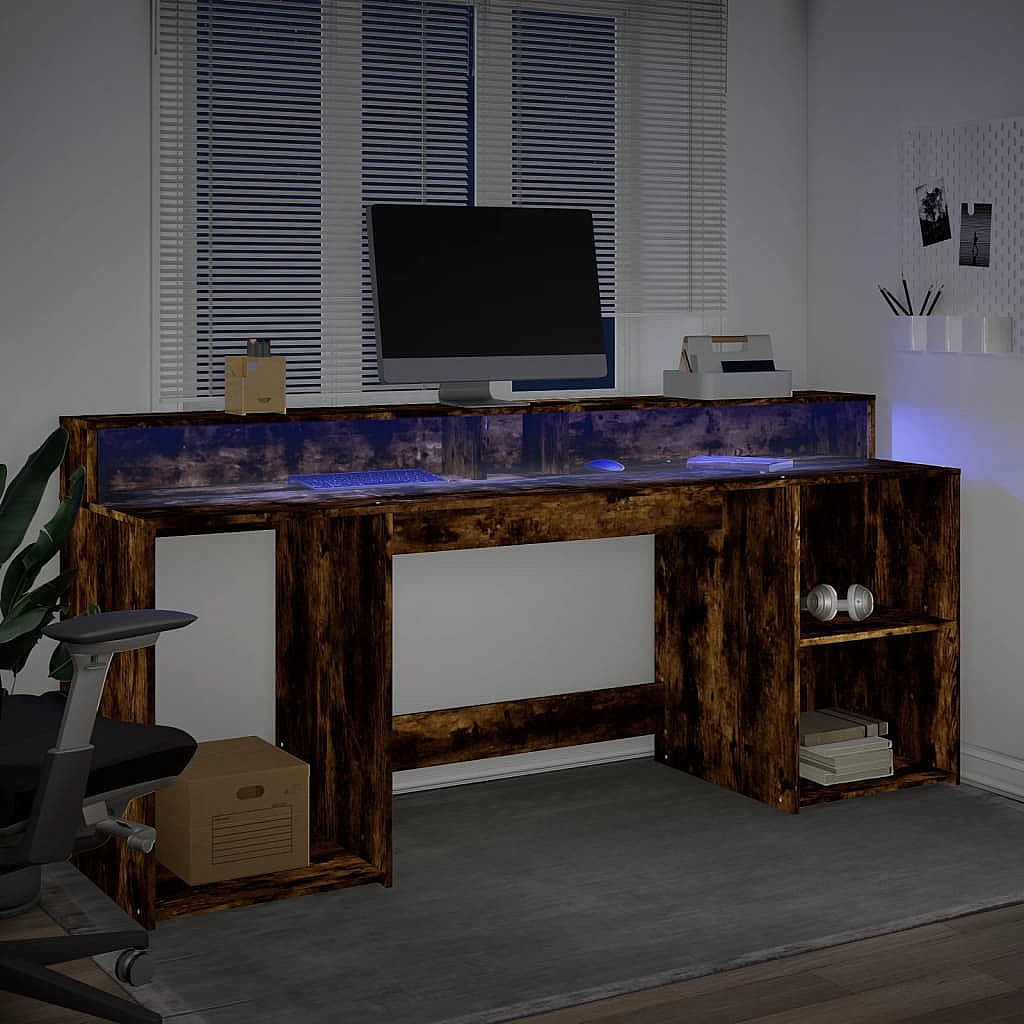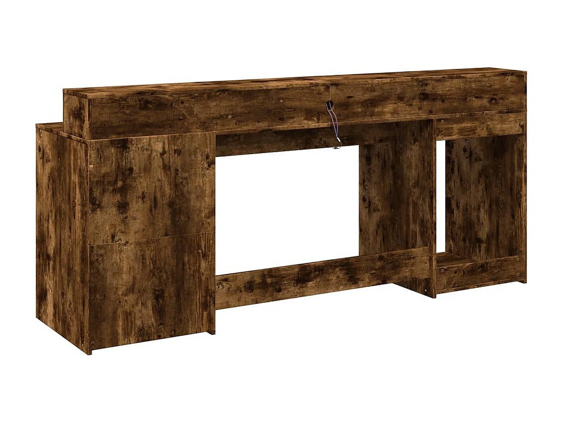 Bureau et lumières LED chêne fumé 200x104x91cm bois ingénierie