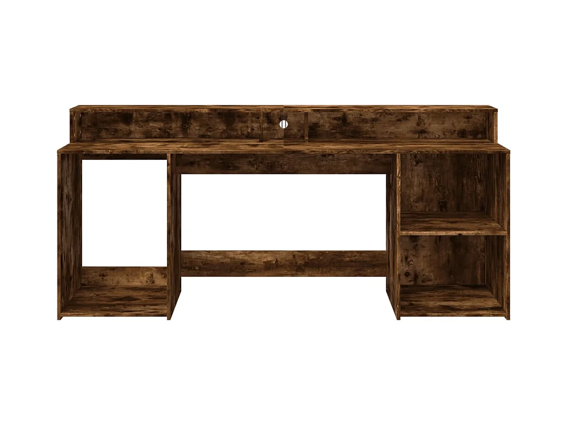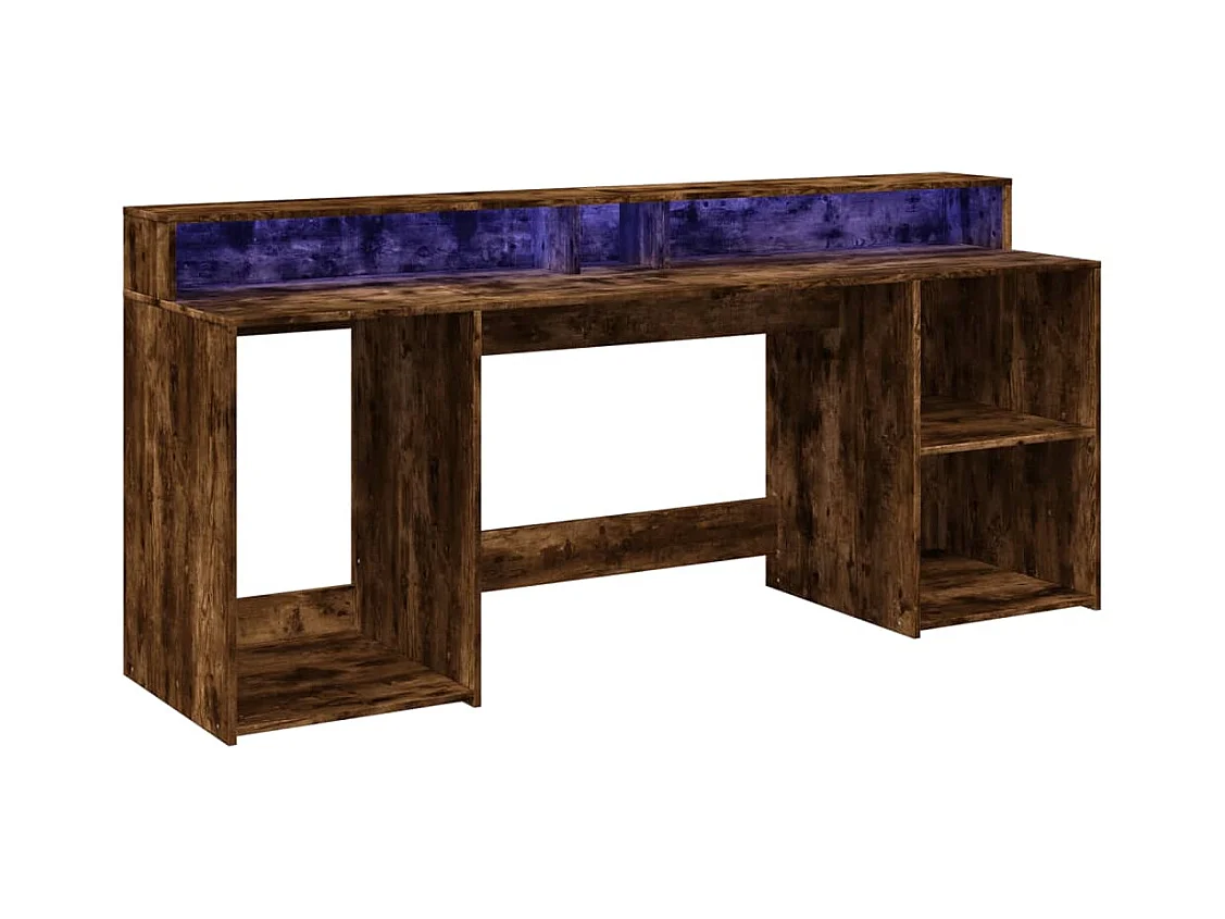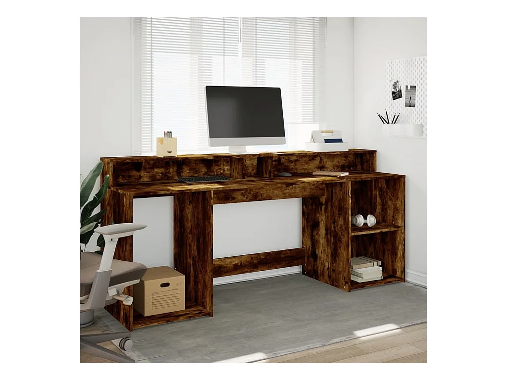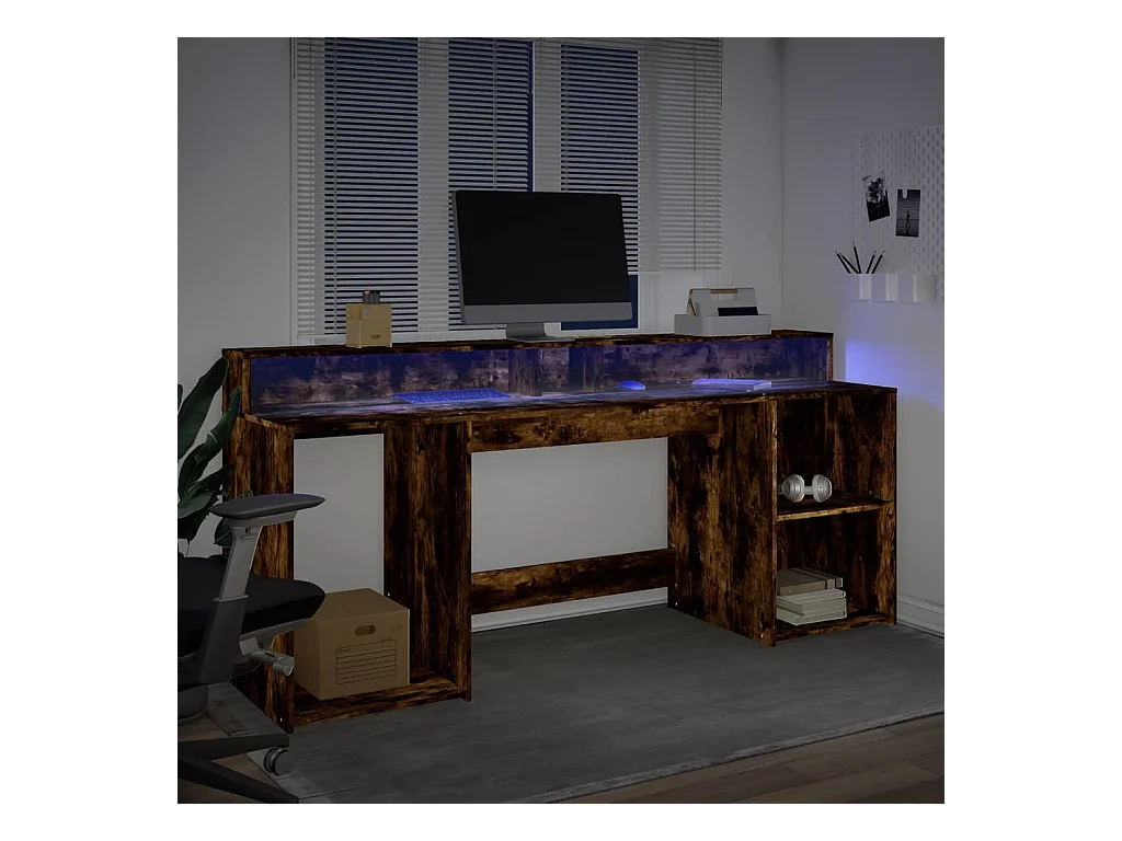 Bureau et lumières LED chêne fumé 200x55x91cm bois d'ingénierie