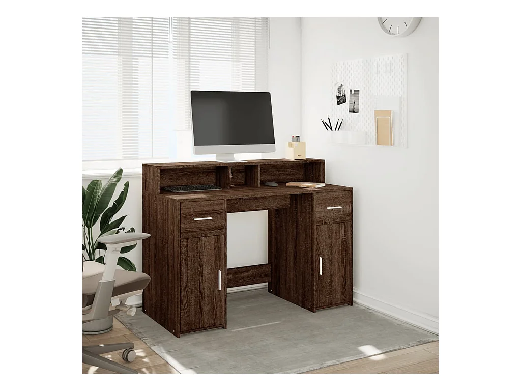 Bureau et lumières LED chêne marron bois d'ingénierie
