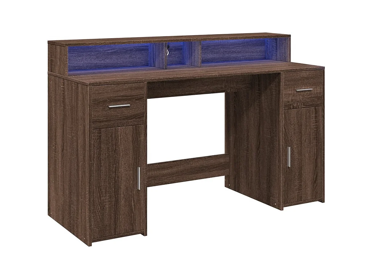Bureau et lumières LED chêne marron bois d'ingénierie