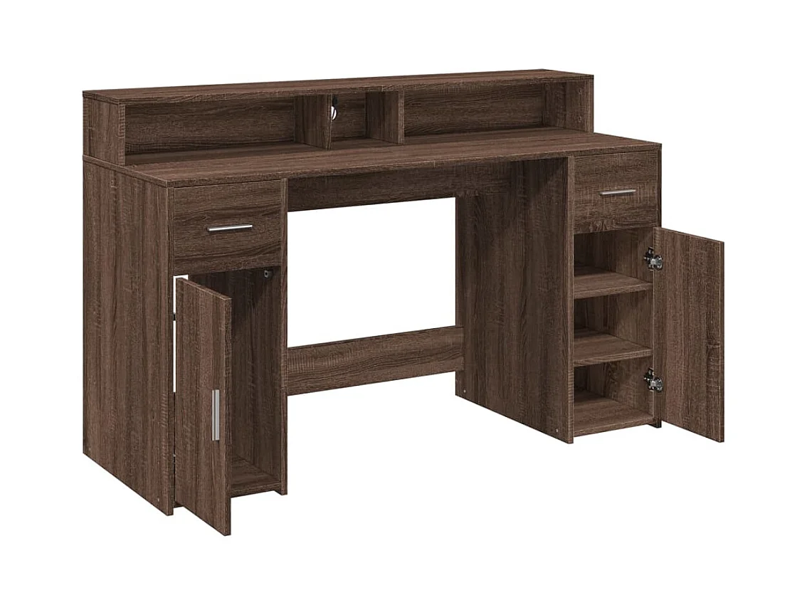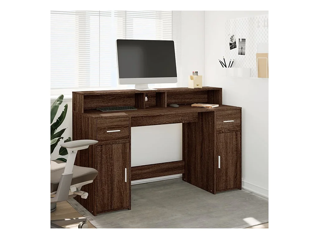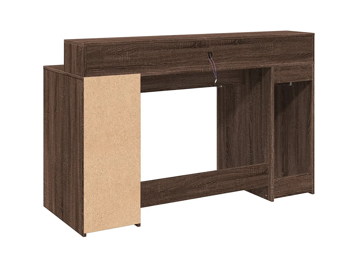 Bureau et lumières LED chêne fumé 140x55x91cm bois d'ingénierie