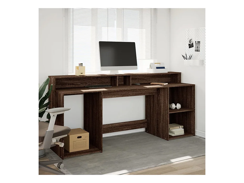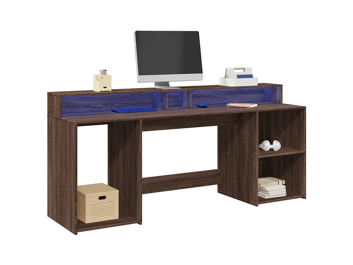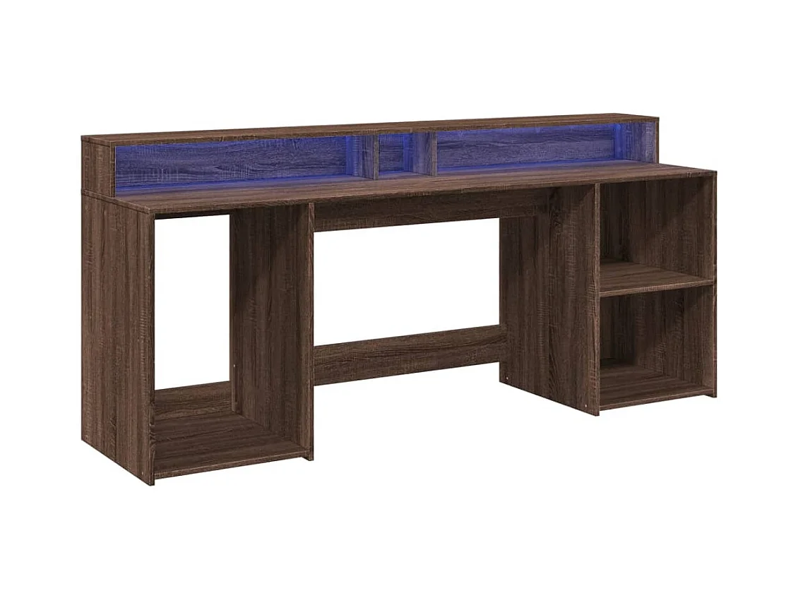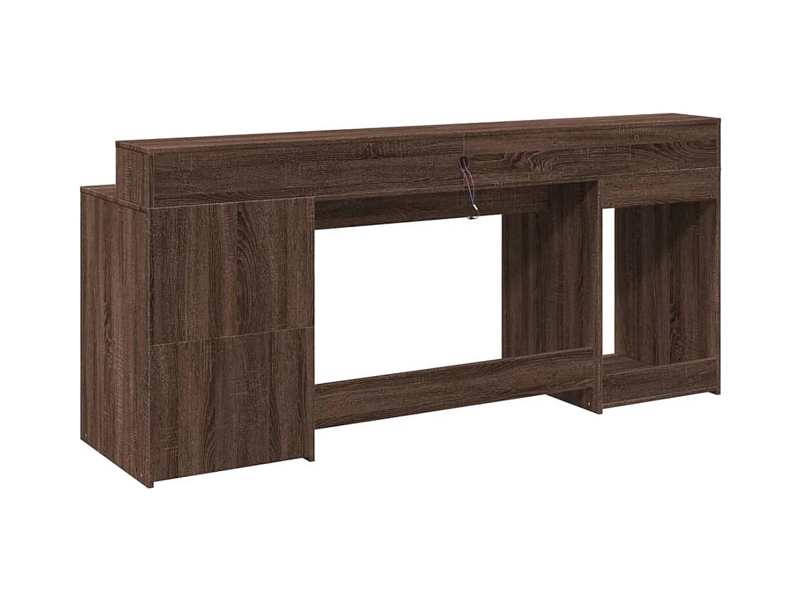 Bureau et lumières LED chêne marron bois d'ingénierie