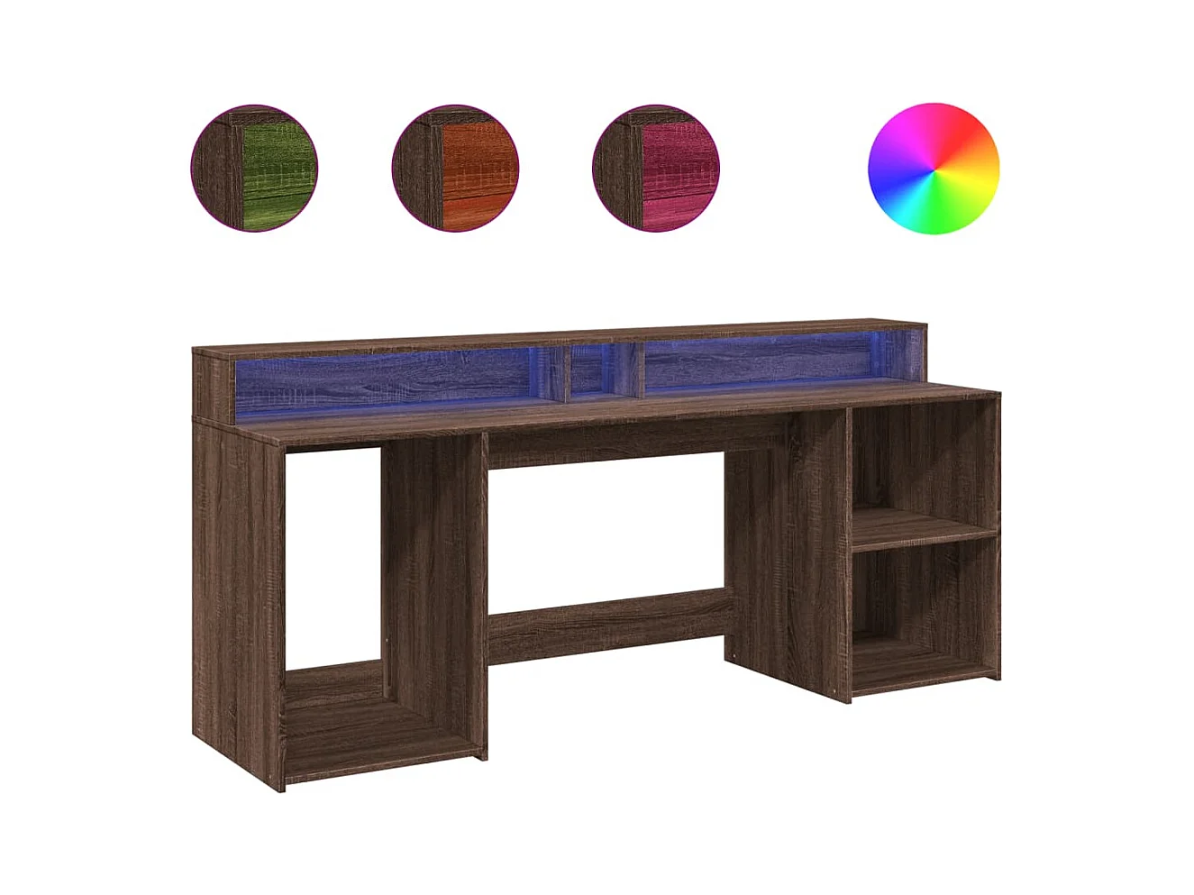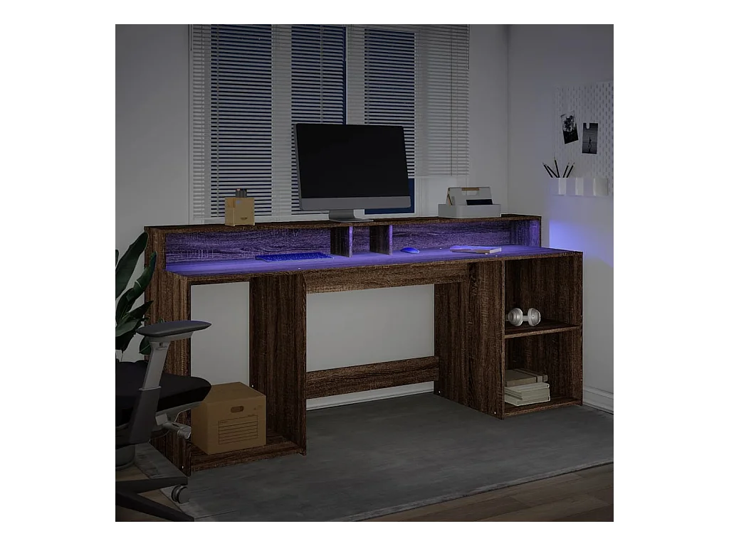 Bureau et lumières LED chêne fumé 160x55x91cm bois d'ingénierie
