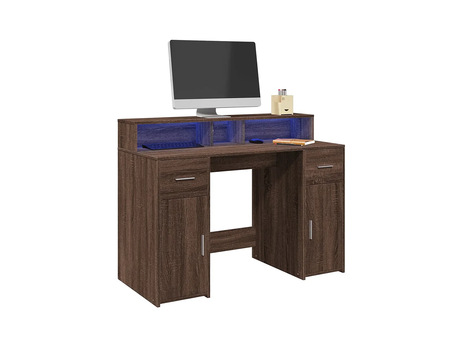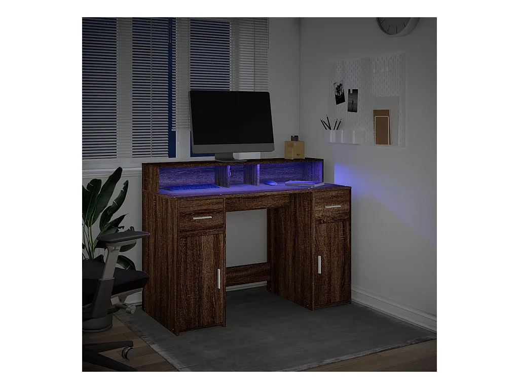 Bureau et lumières LED chêne marron bois d'ingénierie