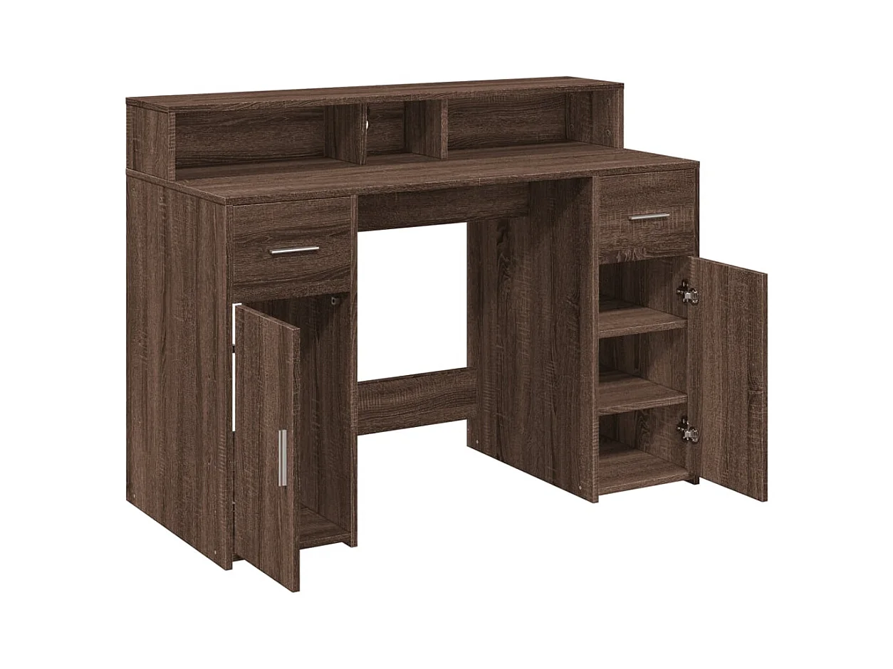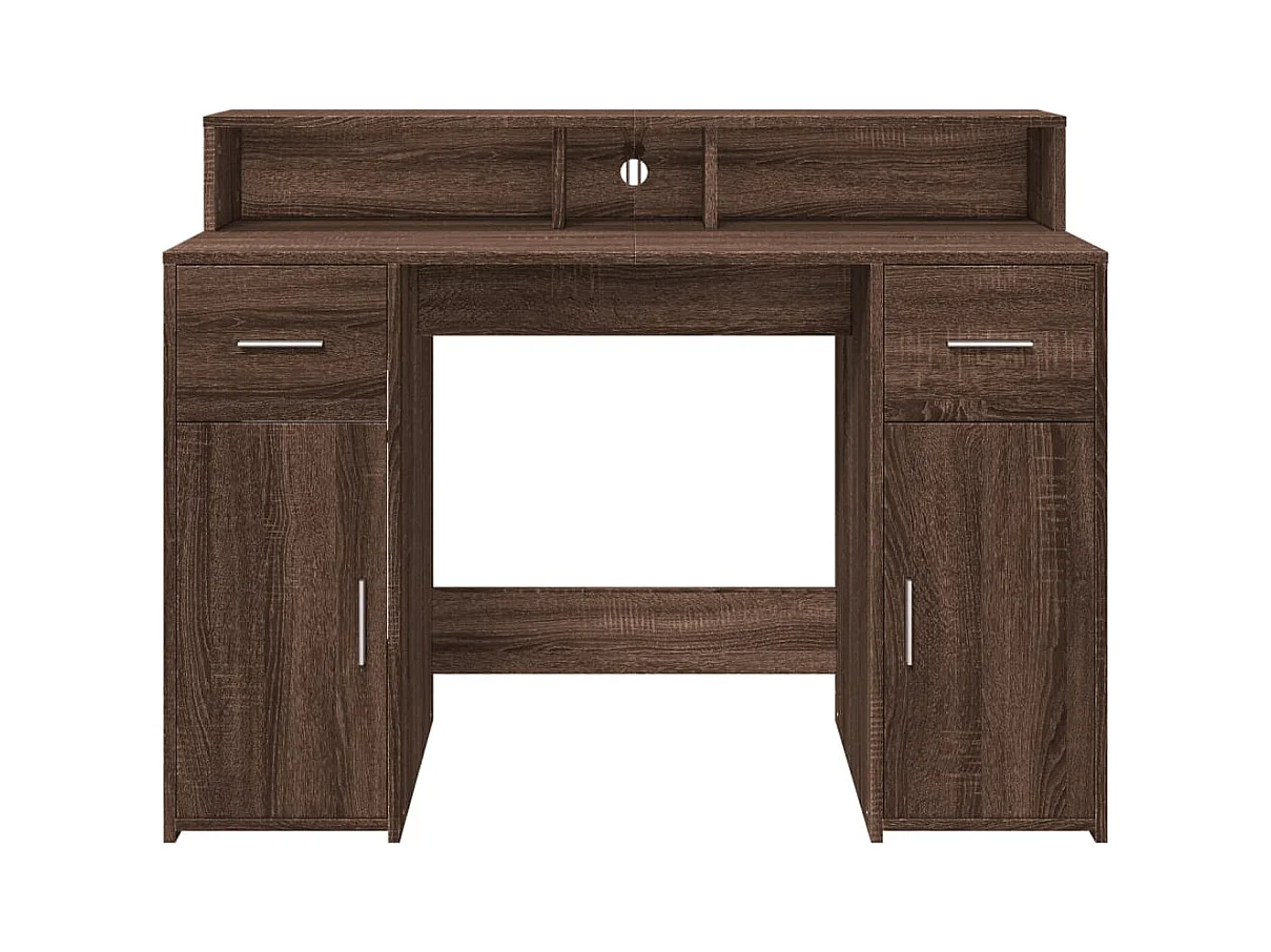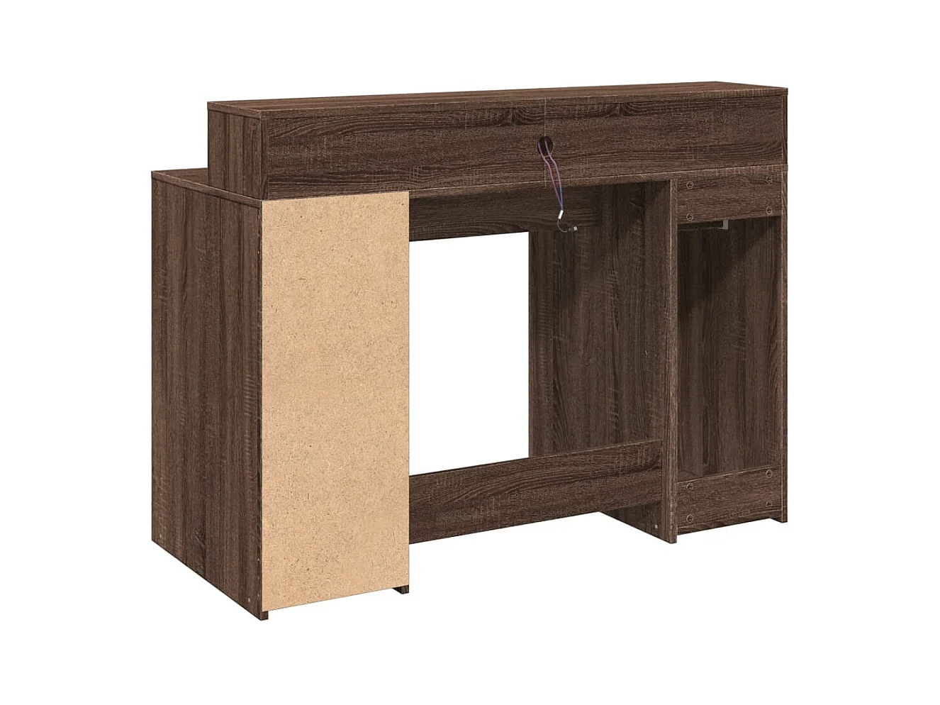 Bureau et lumières LED chêne fumé 120x55x91cm bois d'ingénierie