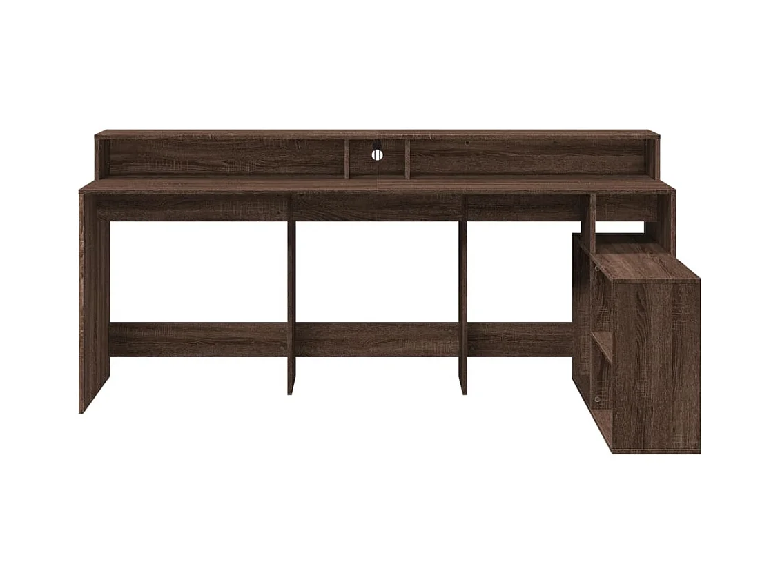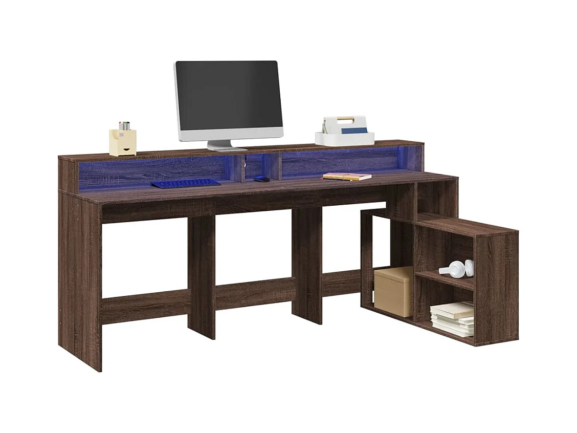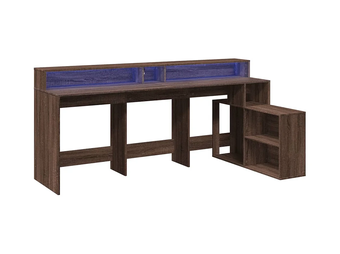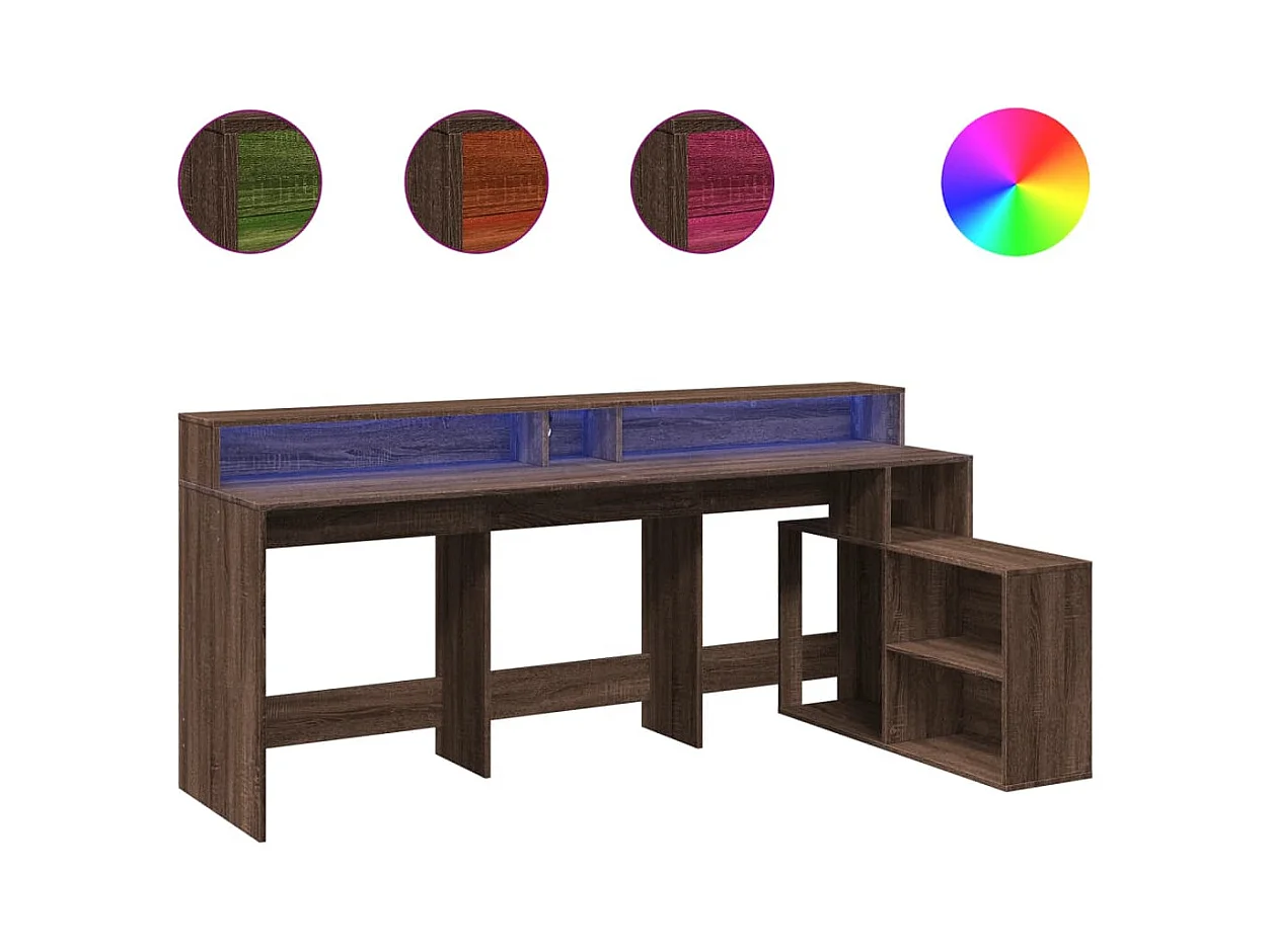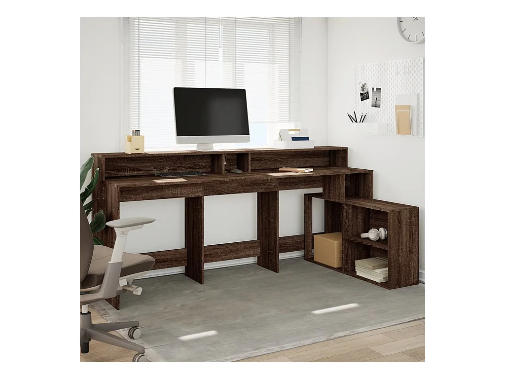 Bureau et lumières LED chêne fumé 200x104x91cm bois ingénierie