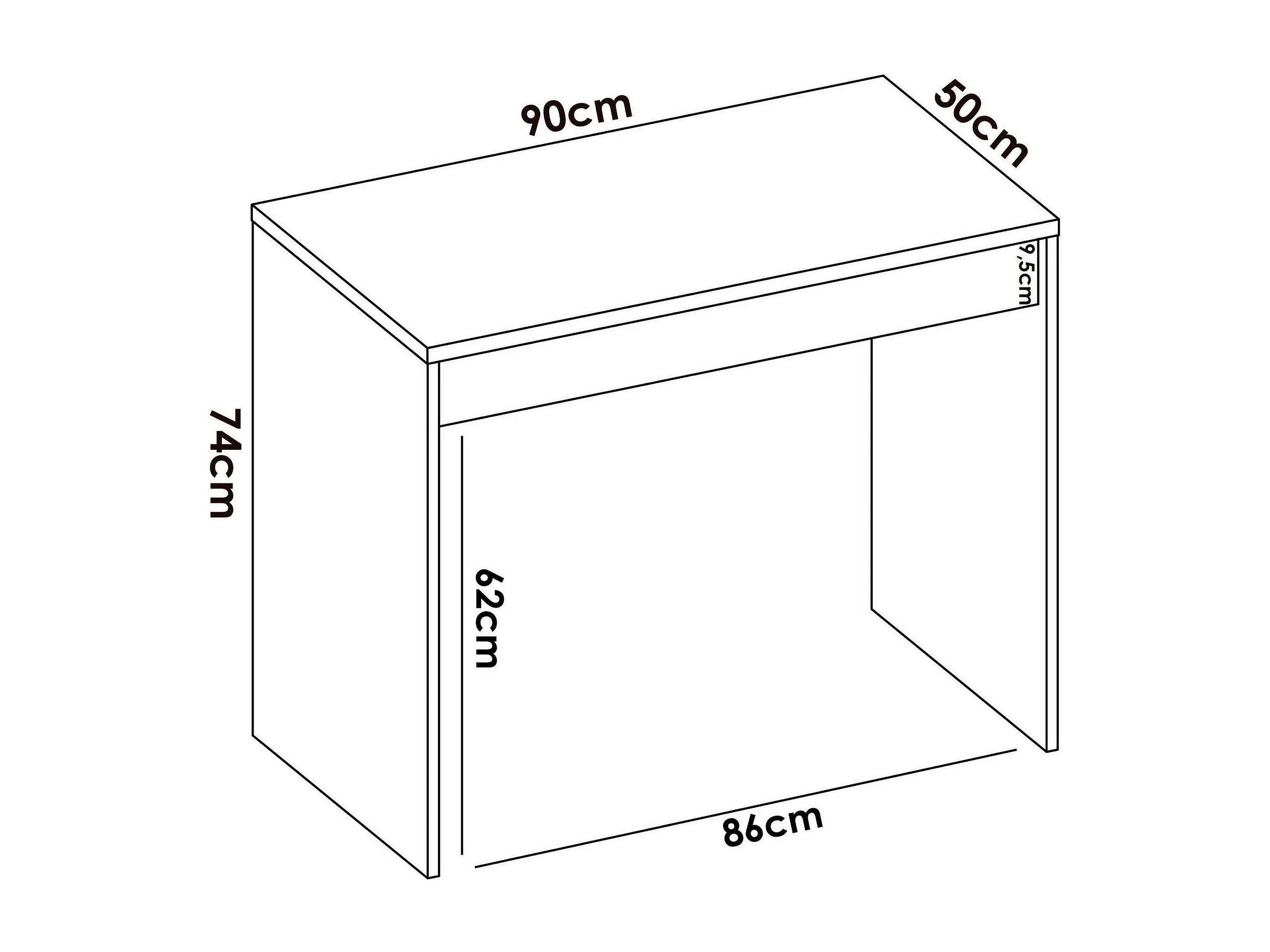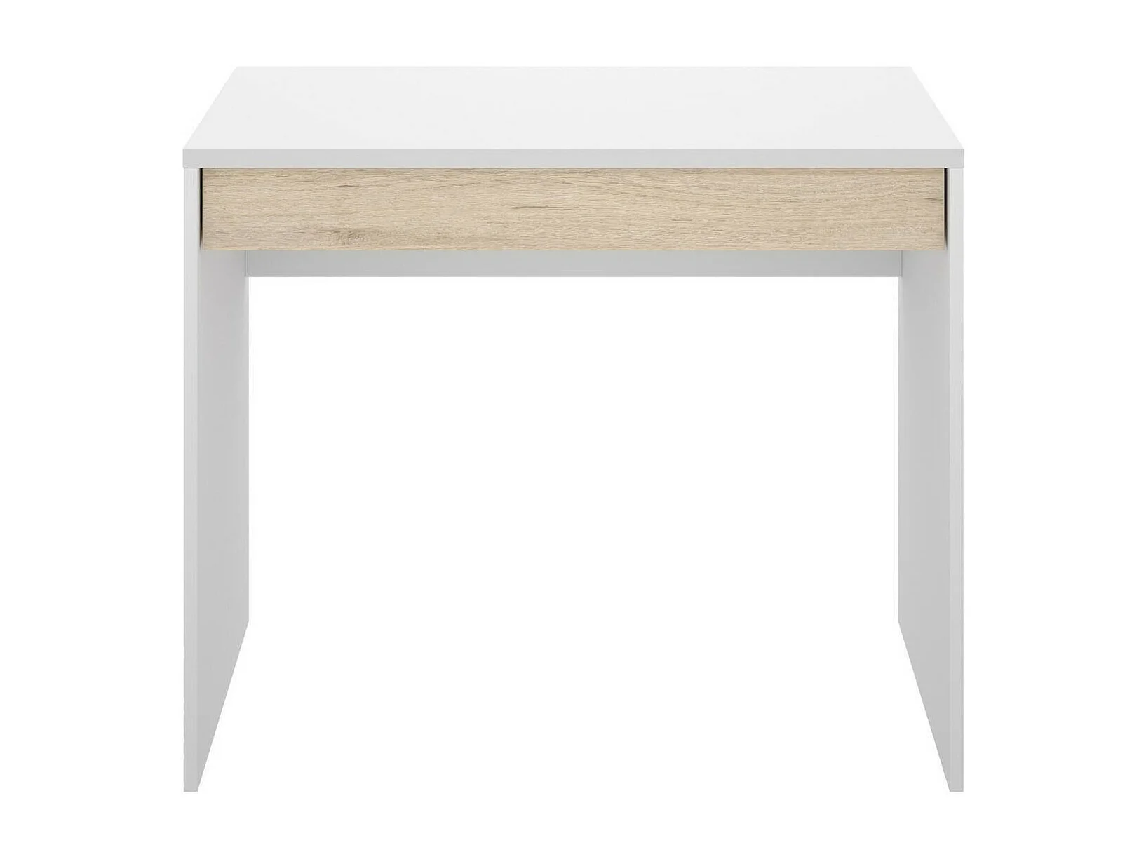 Bureau perforé, Bureau polyvalent peu encombrant, Table d'étude linéaire avec 1 tiroir, 90x50h74 cm, Blanc et Chêne