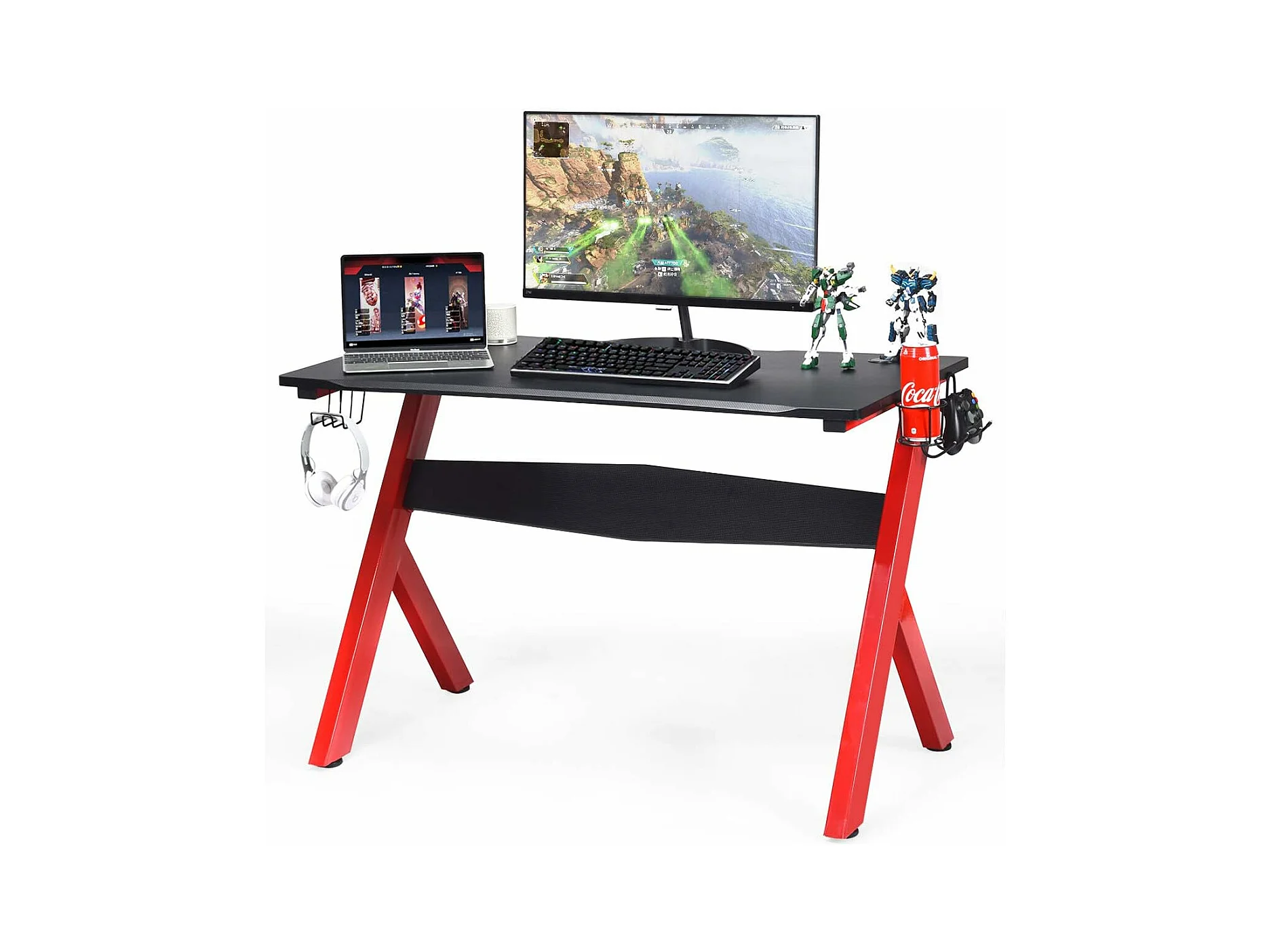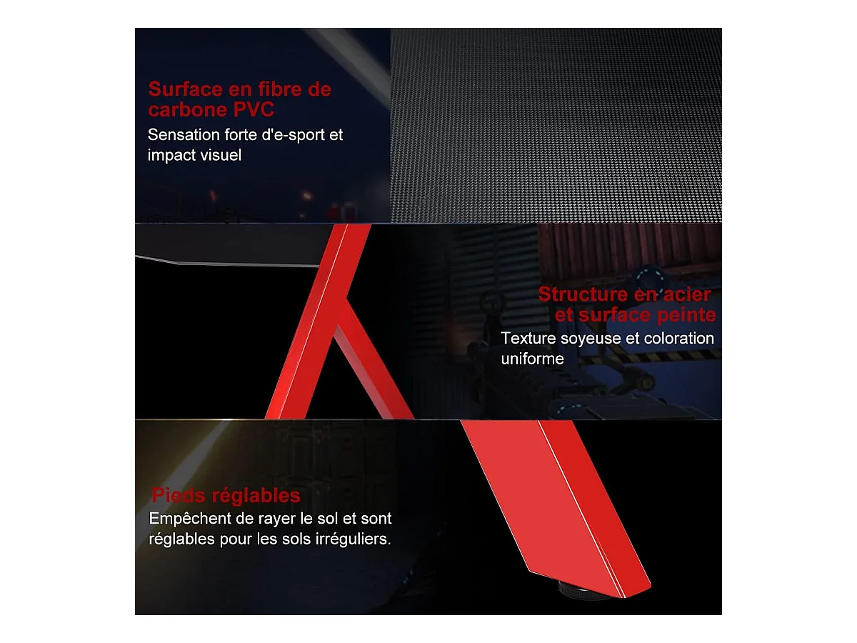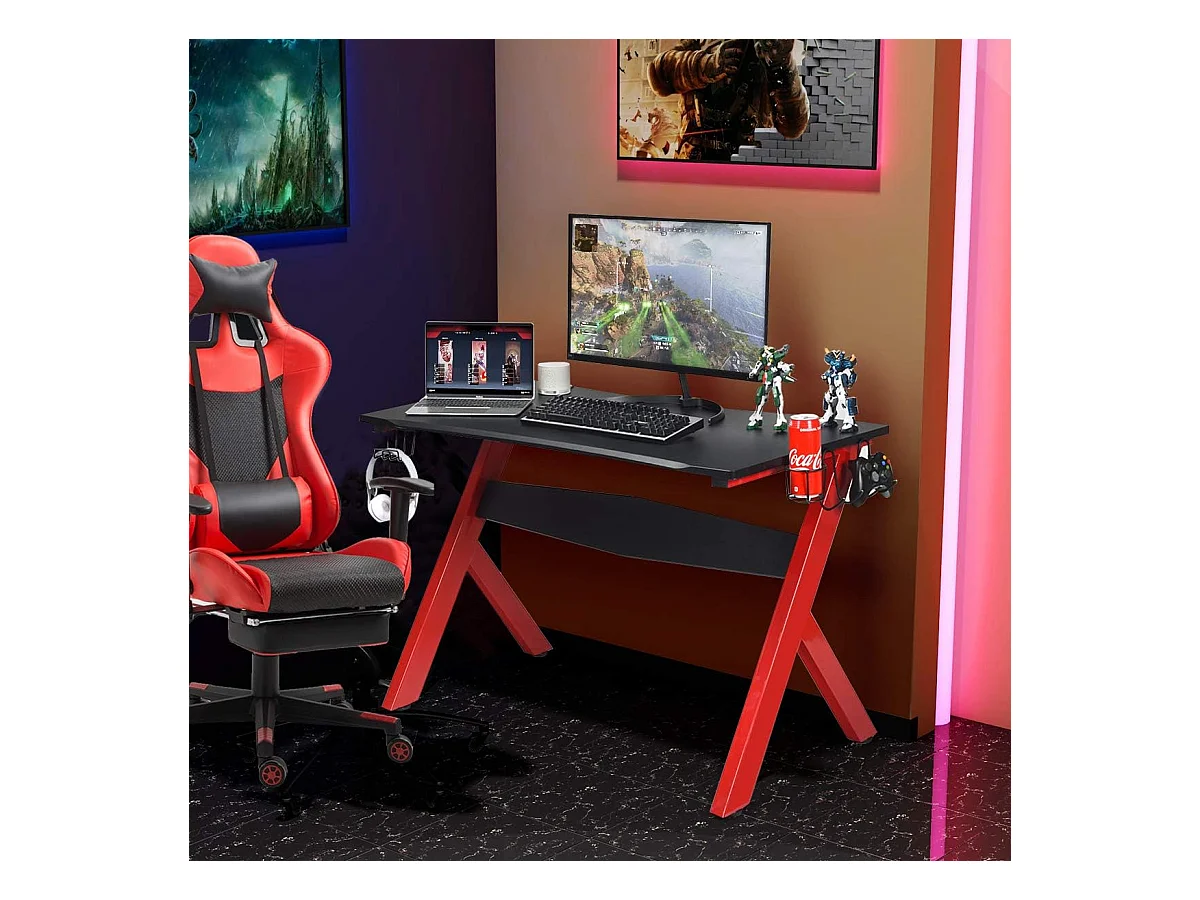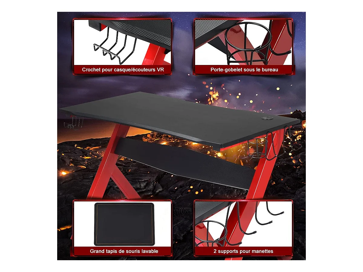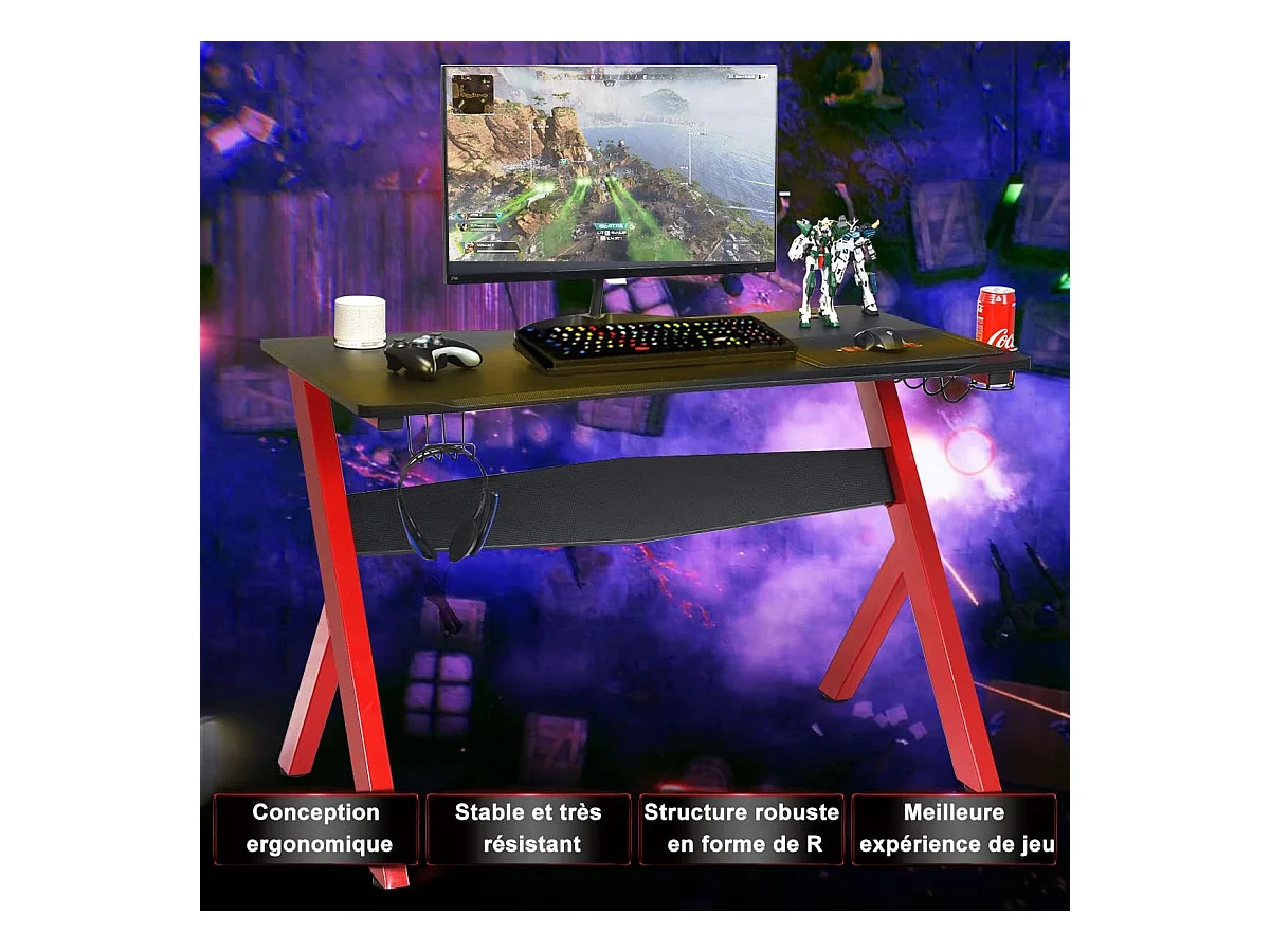 Bureau gamer pour e-sport avec porte-gobelet,tapis de souris,support pour ecouteurs en fibre