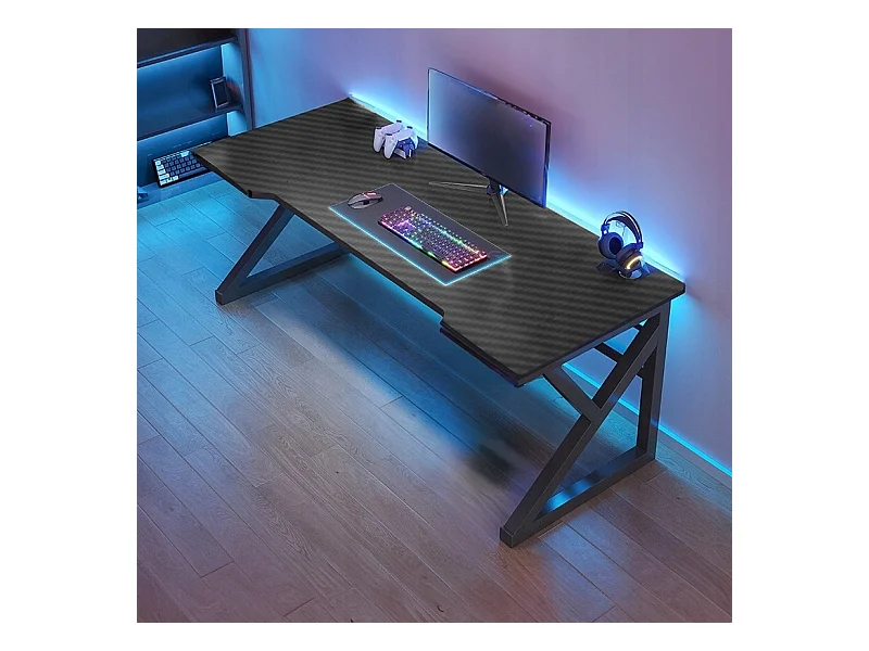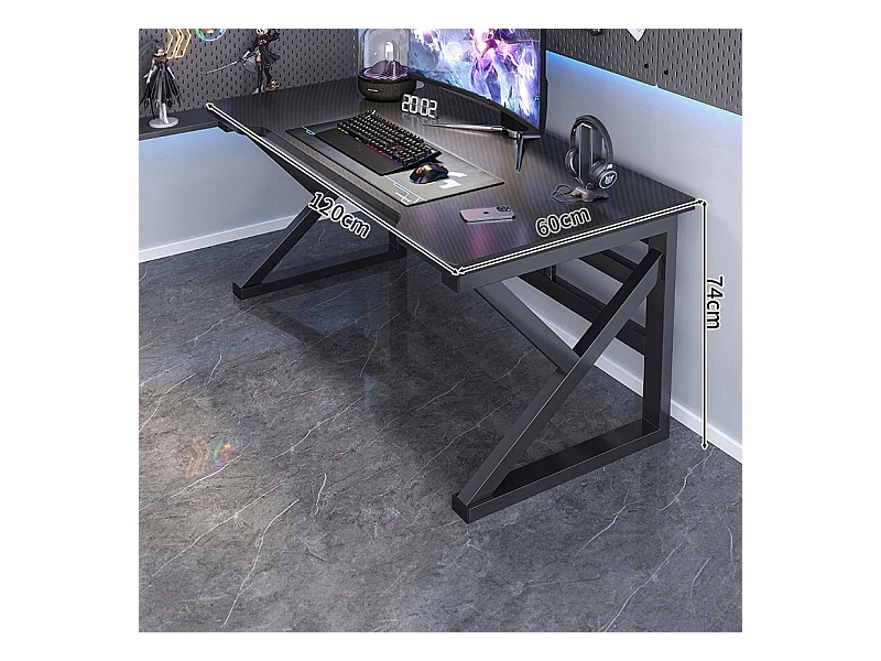 BUREAU GAMING INFORMATIQUE NOIR CARBONE MODERNE POUR JOUEUR LOFT 120 CM