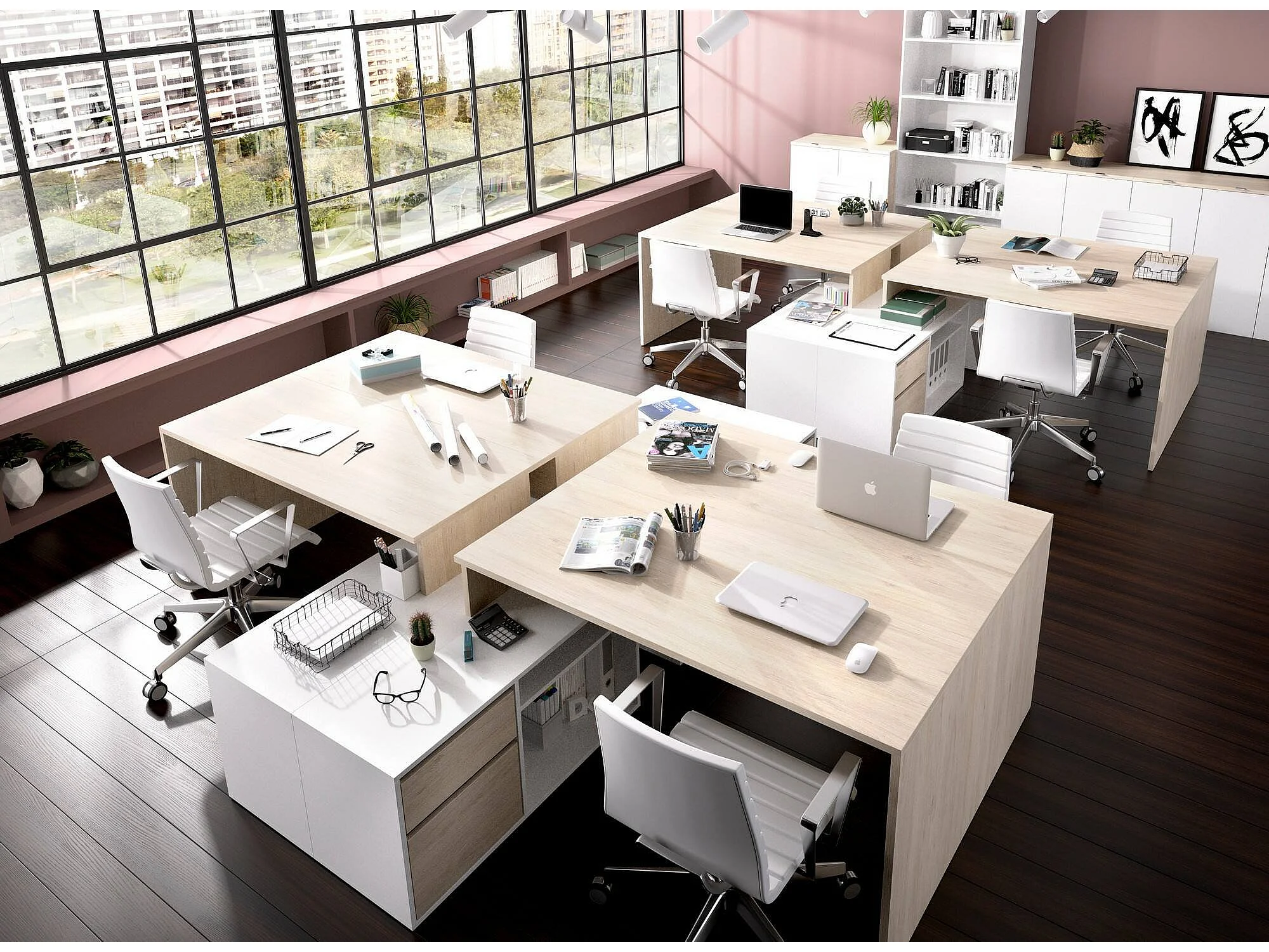 Bureau Gardena, Bureau multi-positions pour le bureau ou la chambre, Table d'étude d'angle polyvalente, 139x92h75 cm, Blanc et Chêne