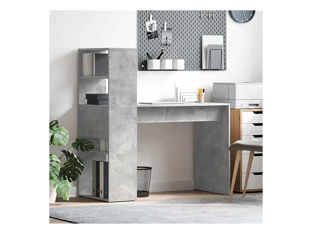 Bureau avec étagères gris béton 100x45x140 cm bois d'ingénierie