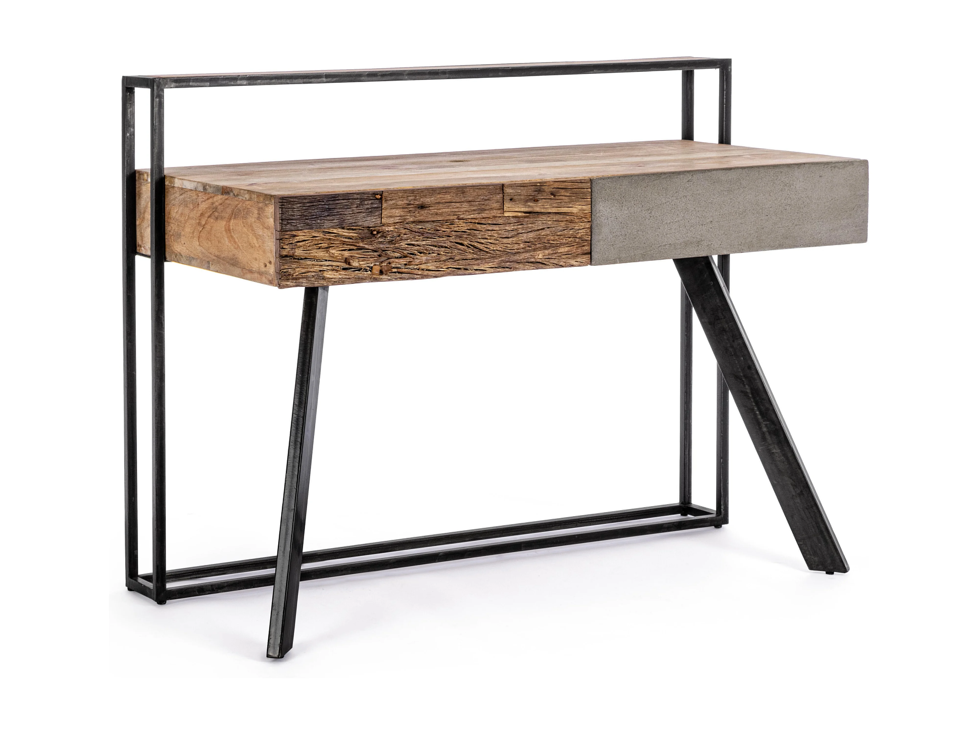 Bureau industriel bois de manguier recyclé et acier noir Kramer 120cm
