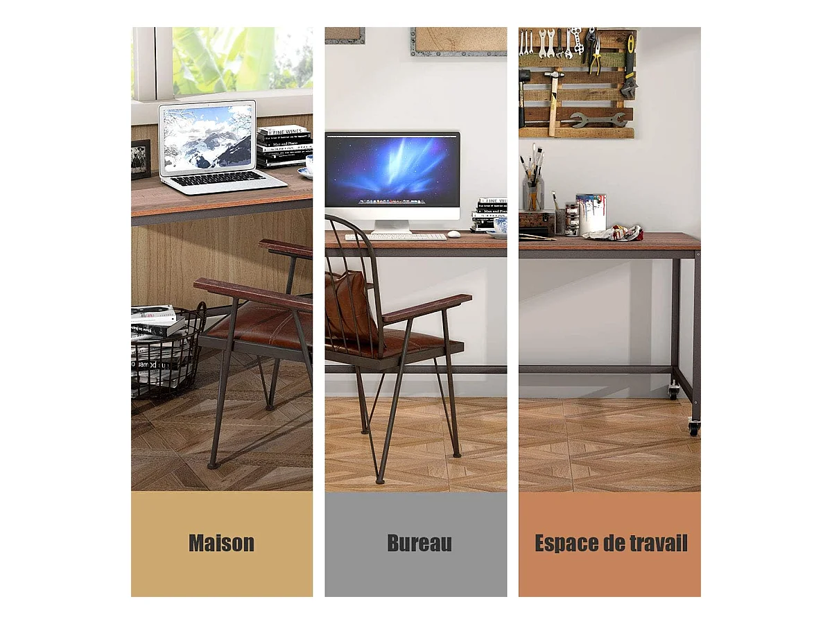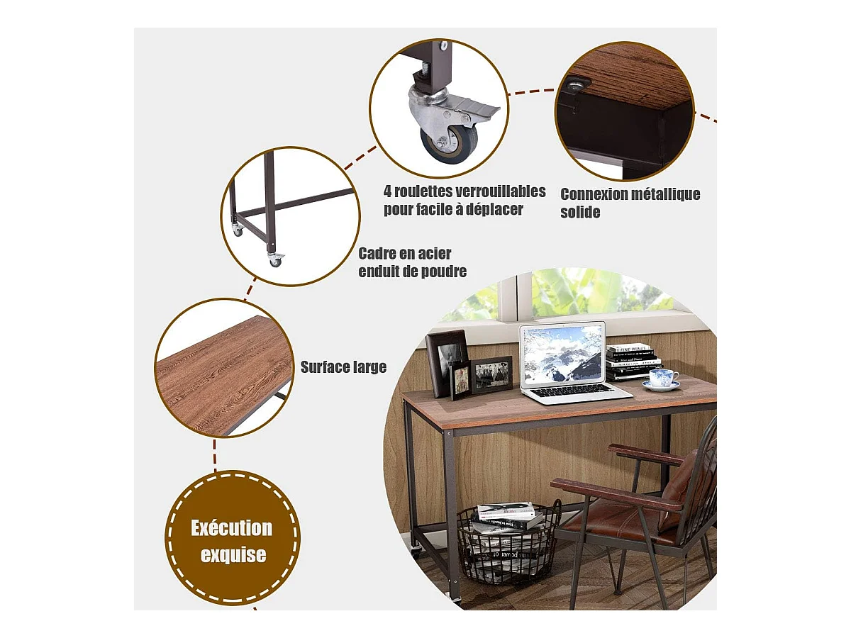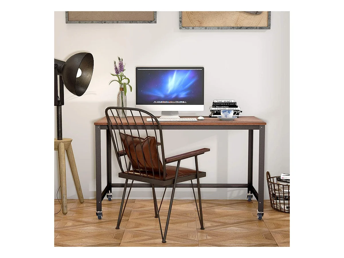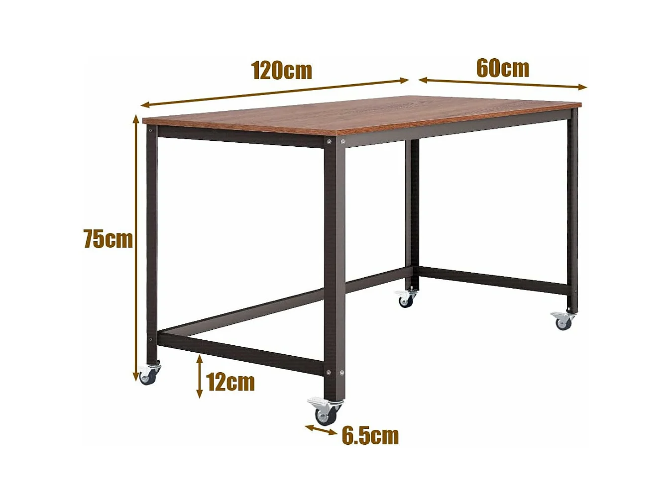 Bureau Informatique à Roulette avec Cadre en Acier Bureau à Domicile 120x60x75CM (Brun)