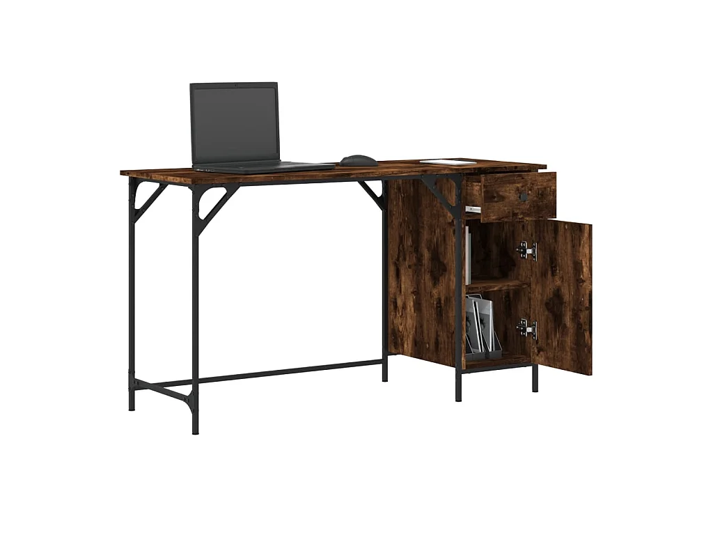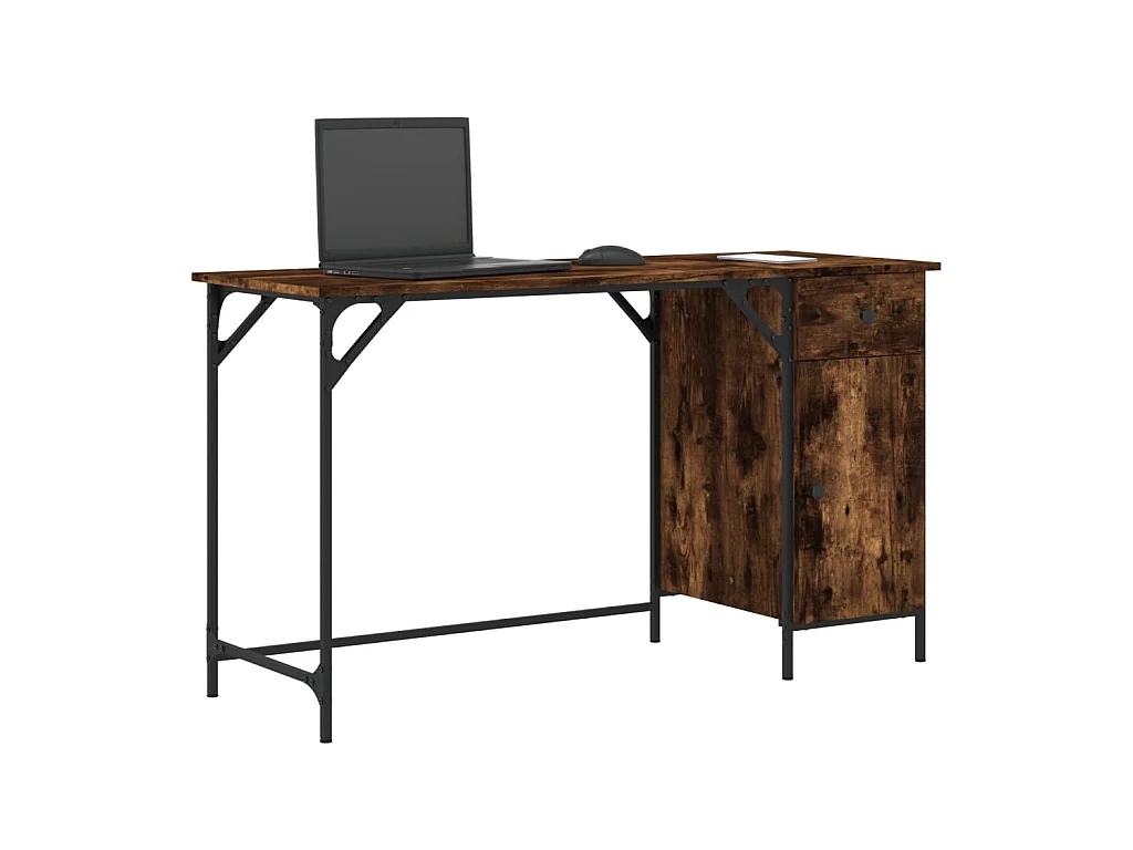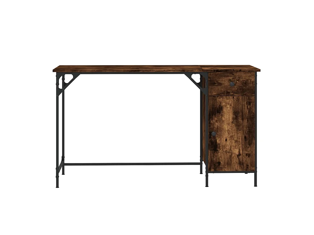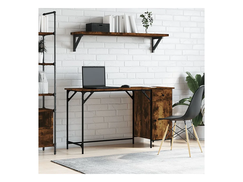 Bureau informatique chêne fumé 131x48x75 cm bois d’ingénierie OFR91573 BonneVie Meuble
