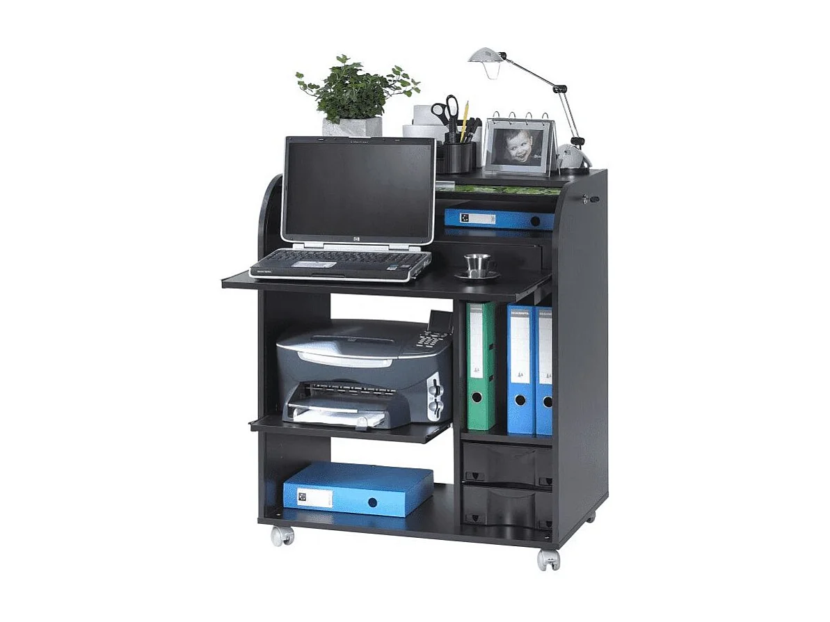 Bureau informatique noir à rideau blanc Must 80cm