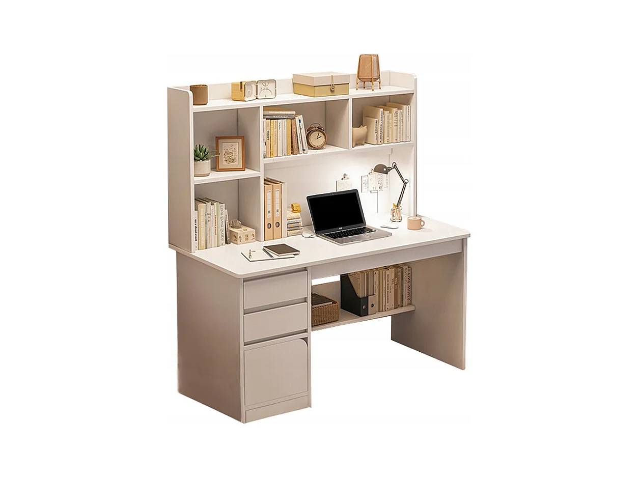BUREAU INFORMATIQUE POUR ADOLESCENTS TABLE BLANCHE AVEC ÉTAGÈRE ÉTAGÈRES TIROIRS