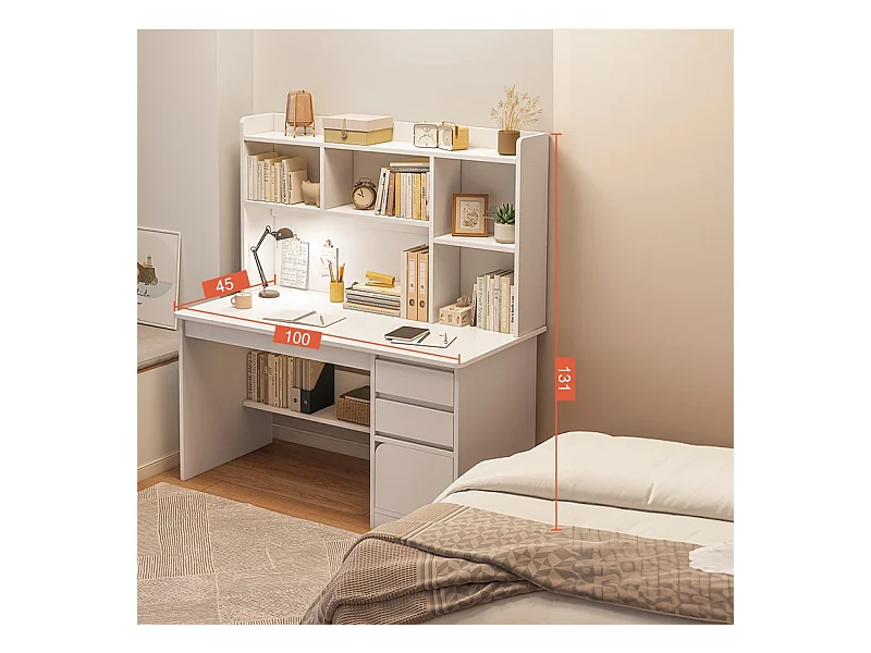 BUREAU INFORMATIQUE POUR ADOLESCENTS BLANC STYLE SCANDINAVE GRANDES ÉTAGÈRES 100 CM