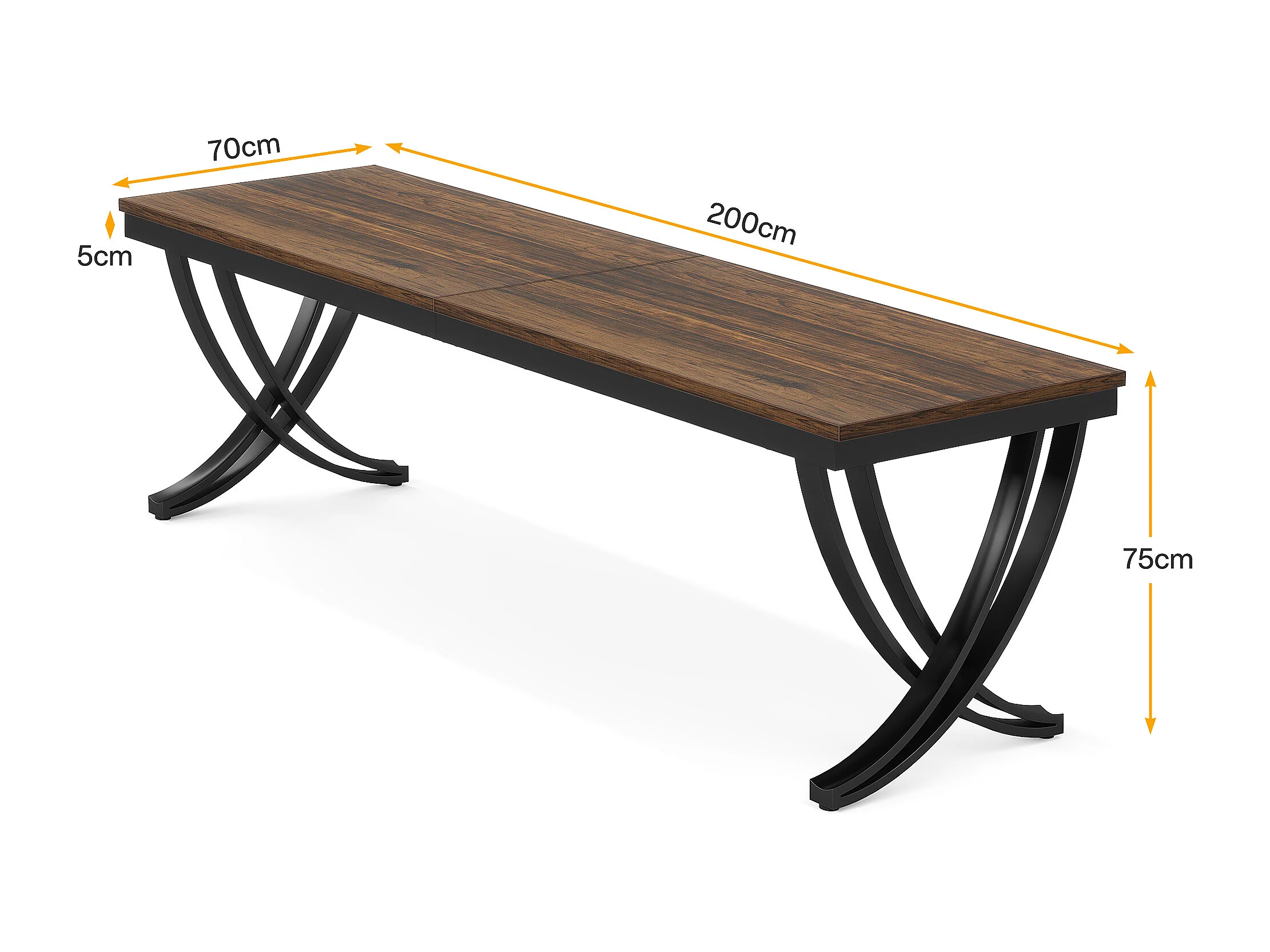 Bureau Informatique, Table d'ordinateur Portable, Double Bureau Long pour Chambre de Bureau à Domicile, 200 x 70 x 75 cm, Marron Rustique